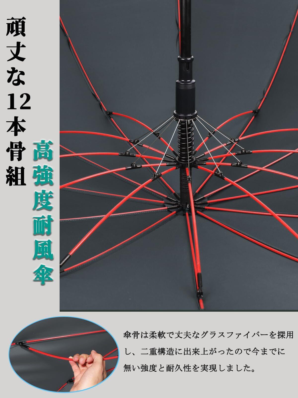 高強度12本骨:長傘は12本親骨と厚肉鉄製の中棒を採用し、傘の耐久性と耐風性を倍増させ、強風などの悪天候でも簡単に耐えられます。傘は親骨が高品質のグラスファイバーで作られ、傘の強度を向上させ、激しい雨でも安心して使用できます。