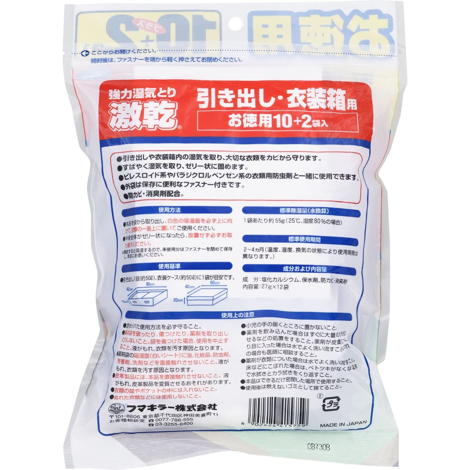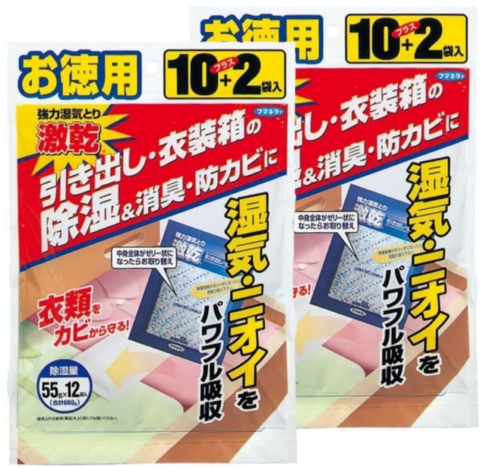 激乾 【まとめ買い】フマキラー 引き出し・衣装箱用 除湿剤 強力湿気取り 消臭 防カビ対策 徳用 12袋入 × 2個