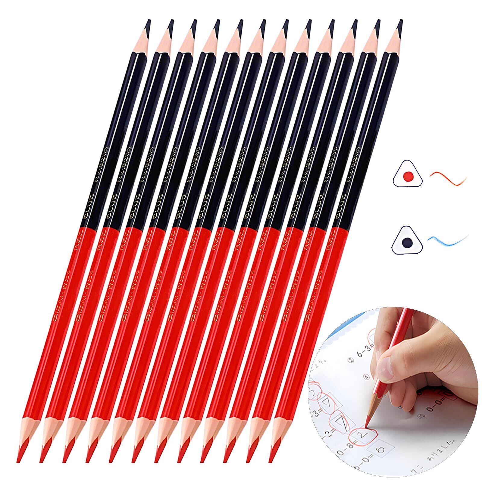 【新着商品】持ちやすい 赤青鉛筆 三角軸 机から落ちない シンプルデザイン 丸つけ用 書きやすい 12本入り 削り済みの 小学生赤青鉛筆