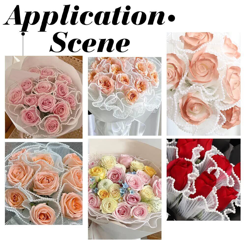 仕様:パールエッジ花束包装紙長さ4m、幅約28cm;パールビーズ:約3mm;カラー:白