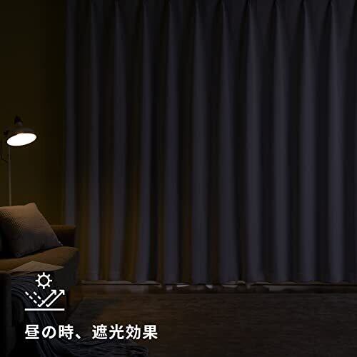 ◆【一級遮光】このカーテンは遮光度が99.99%以上,外からの光をほとんど通さないため、昼間カーテンを閉めたお部屋のなかで相手の顔の表情が分からない程度にまでお部屋を暗くできます。同じ等級であっても、カーテンの明度や色彩によって遮光の度合いが変わります。薄い淡い色は光を通しやすく、濃い暗い色は光を通しにくいです。遮光性を重視される方は濃色をおすすめします。