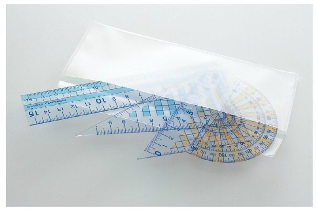 ●柔軟性があり割れにくい再生PET樹脂製タイプです。●三角定規は2枚の色を変えることで見分けやすくしました。●目盛りの長さに強弱をつけ、5cmごとに数字を大きくし読みやすくしました。また、通常目盛りの下に、右側から始まる左利き対応の目盛りが付いています。●持ち運びに便利なソフトケース付き。まとめて収容できるので便利です。●セット内容/直線定規・三角定規・分度器●材質/本体:R-PET、ケース:オレフィン系樹脂●目盛り寸法/直線定規:15cm、三角定規:10cm●外寸法(ケース収納時)/W175×D75×H5●専用ソフトケース付き