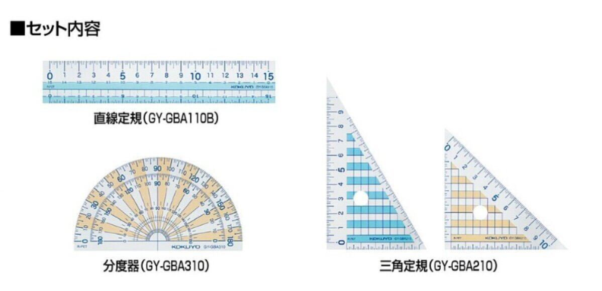 コクヨ 定規セット まなびすと 直線定規 三角定規 分度器セット 専用ケース付き GY-GBA501
