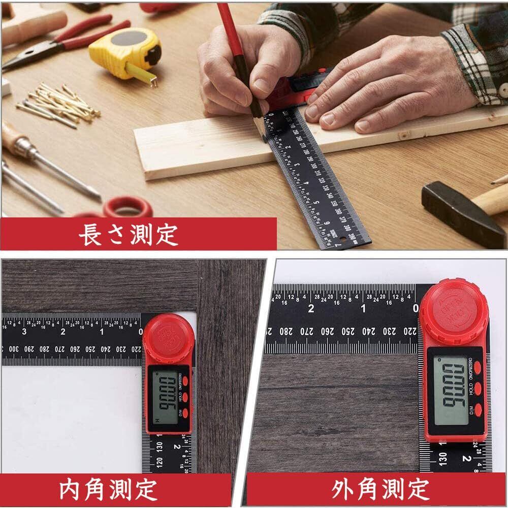 DFsucces デジタル 角度計 分度器 200mm LCD液晶画面 0-360°測定範囲 自由調整 角度測定 長さ測定 電池付属 角度ルーラー 分度器 (レッド)