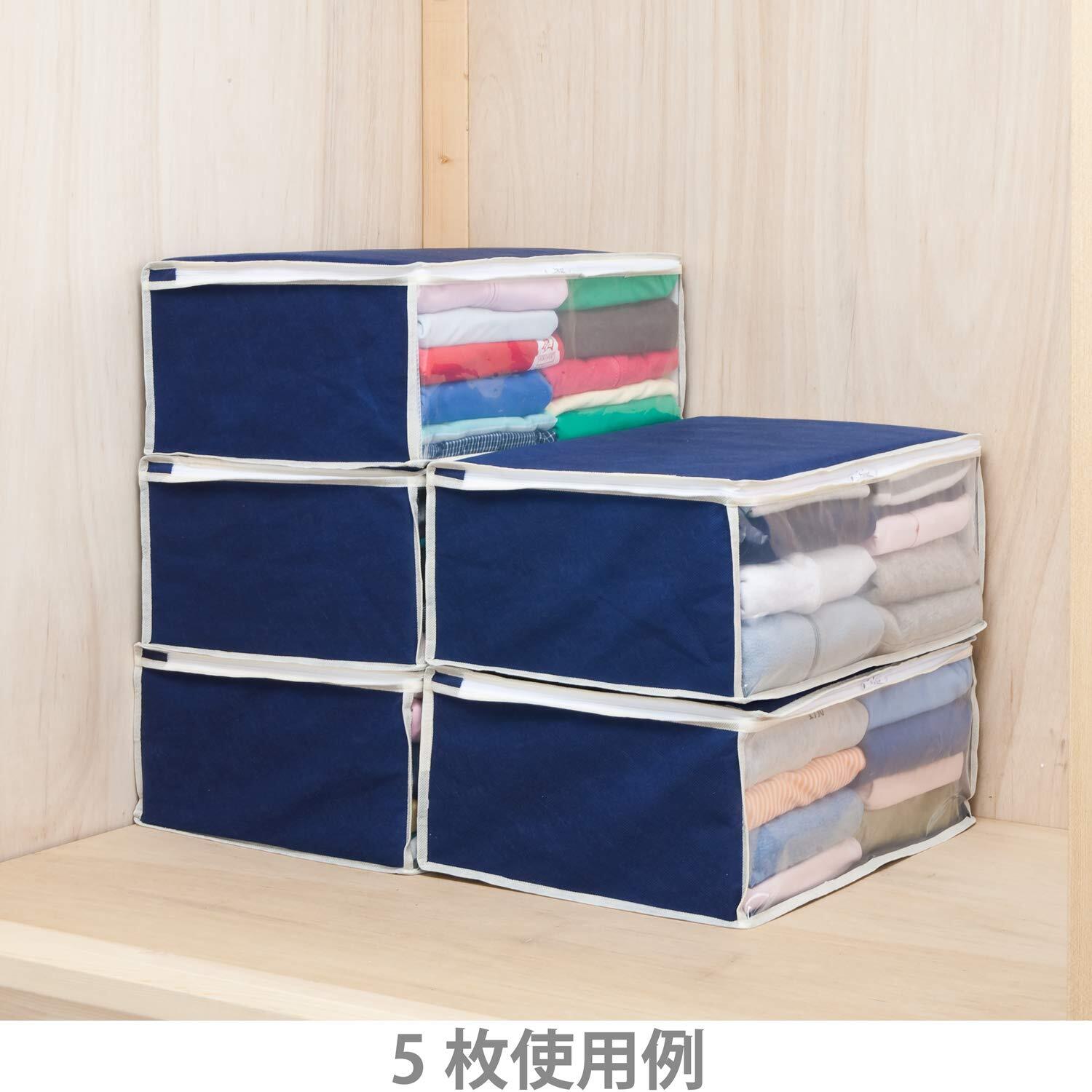 【在庫処分】アストロ 衣類収納ケース ネイビー 2個組 通気性の良い不織布製 洋服 収納袋 保管袋 収納ボックス オフシーズンの衣類をホコリから守る 埃除け 衣装ケース 中身の見える透明窓付き 折りたためる クローゼット 押し入れ収納 131-34