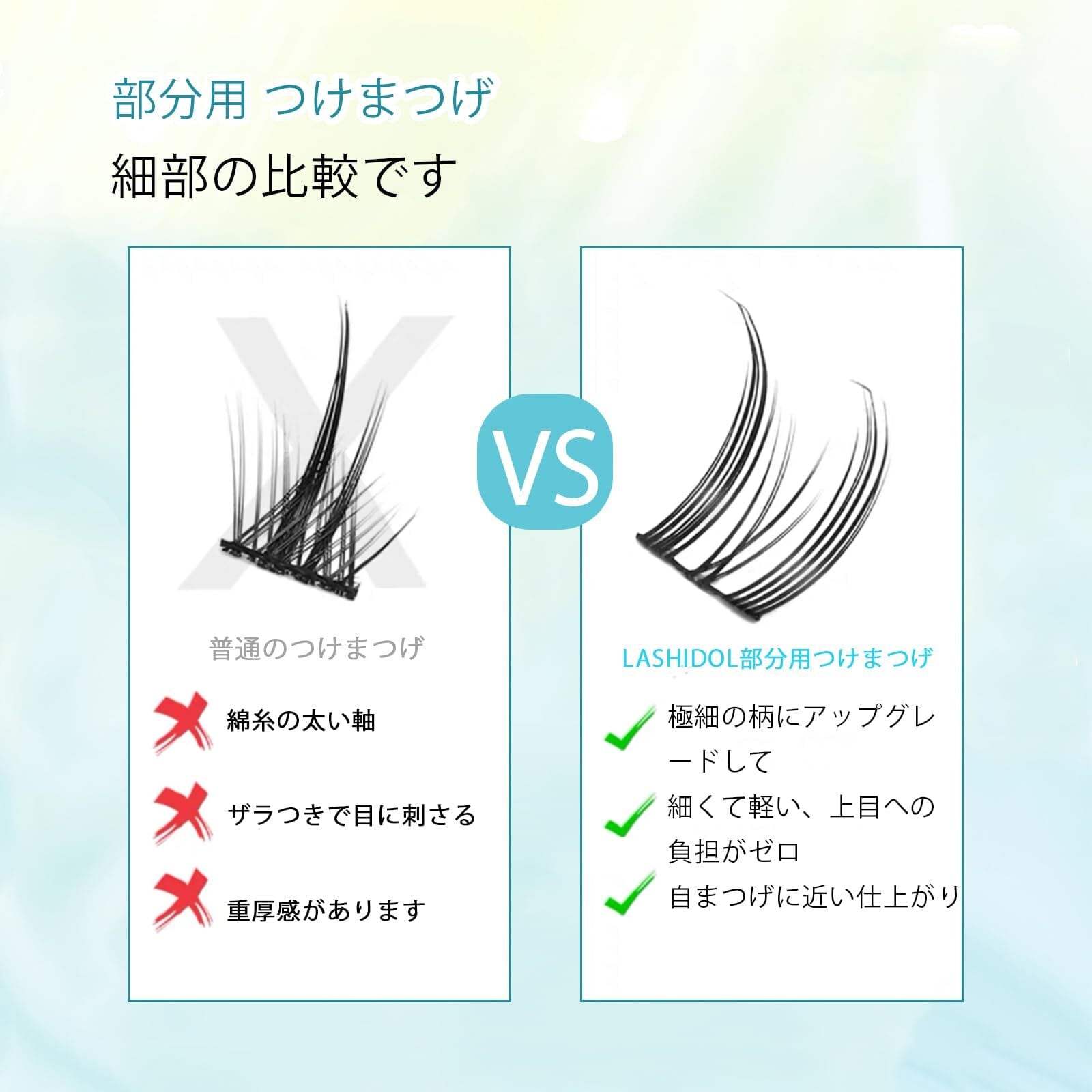 【ナチュラルタイプ】アジア人を対象に特別にデザインされた自然なスタイルです。通常のまつ毛よりも自まつげに馴染みます。