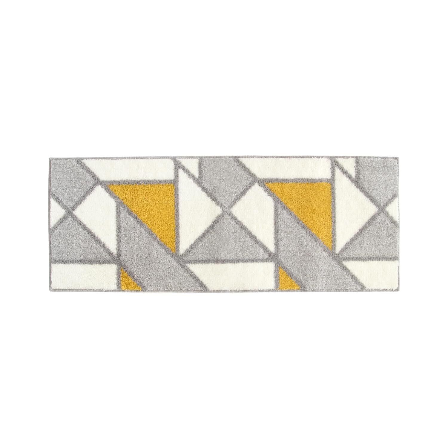 幾何柄模様のスタイリッシュなデザインがおしゃれな「アクシス」キッチンマット。グレーとホワイトに、イエローのカラーがアクセントとなって、シンプルでもキッチンの空間をおしゃれに魅せてくれます。しっかりと糸が詰まったふかふかな踏み心地で、床の冷たさを感じにくく、特に冬場の床からの冷えから足元を守ってくれます。裏面はすべりにくい仕様で、動き回るキッチンでもストレスフリー。洗濯機での丸洗いができて。(※お洗濯の際は洗濯ネットをご使用ください。)お手入れしやすいのも嬉しいポイントです。風水を取り入れたキッチンインテリアにもぴったりなイエローカラーがあるので運気アップのアイテムとしてもおすすめ。普段使いに、贈り物のギフトにもぴったりなインテリアに馴染みやすいキッチンマットです。