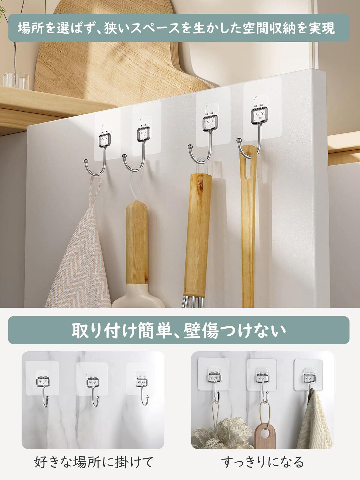 【収納に最適】フック部を180度まで調整可能、壁だけではなくキッチンの吊戸棚などにも使用可能です。優れた防水性があります。湿気ぽい壁にも使えます。便利性のある12枚セットのフックは、キッチン収納(まな板、食器、鍋)、玄関、冷蔵庫、寝間、浴室、壁掛け収納に最適です。