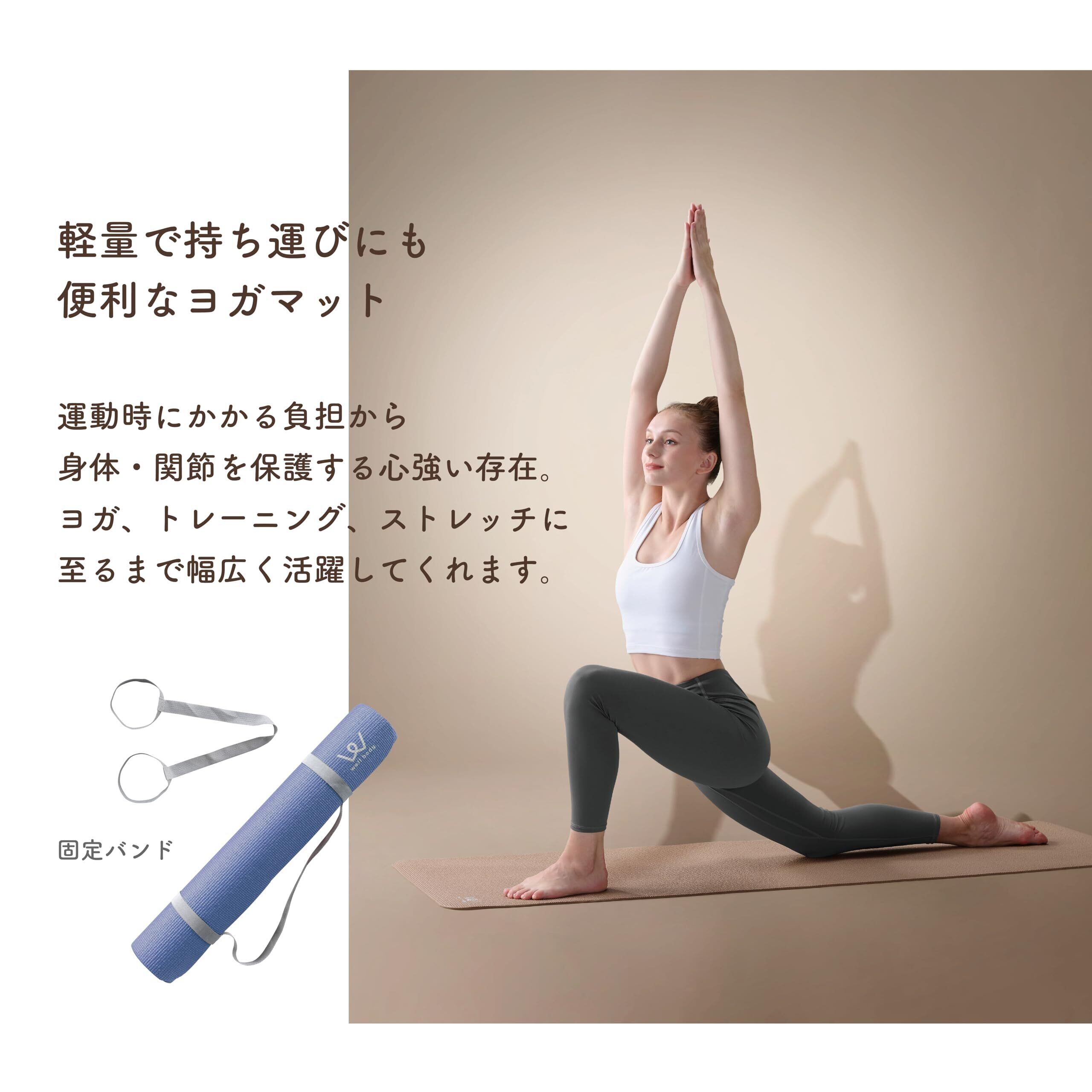 【軽量で扱いやすいヨガマット】軽量で扱いやすい厚みのヨガマットです。豊富なカラー展開で自宅の家具の色に合わせることもできますし、お好みのカラーを選べます。厚みは軽くて持ち運びにも便利な4mmタイプと、身体への衝撃を吸収する6mmタイプの2種類から選べます。