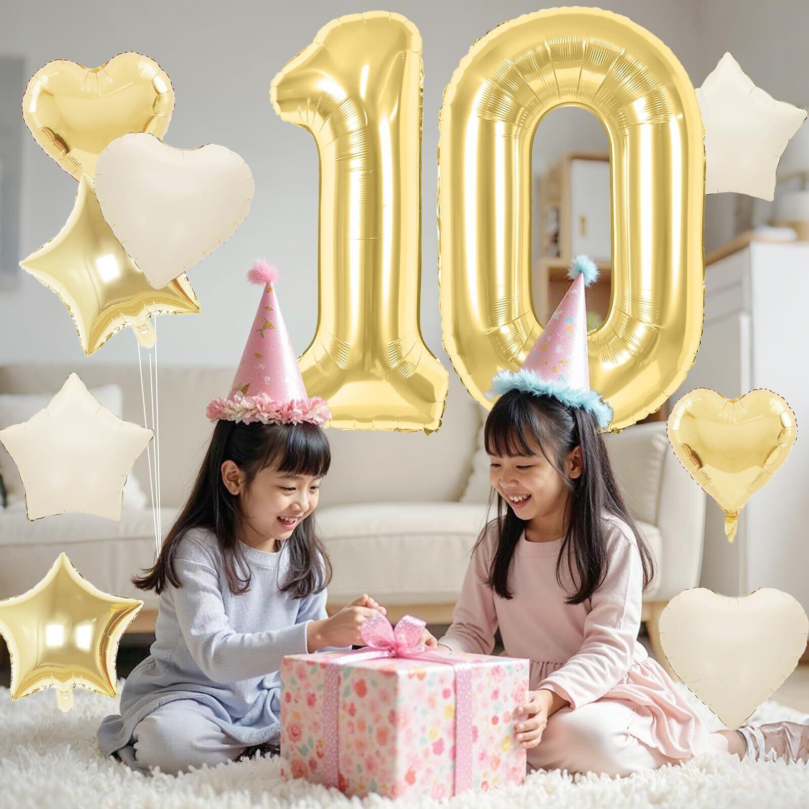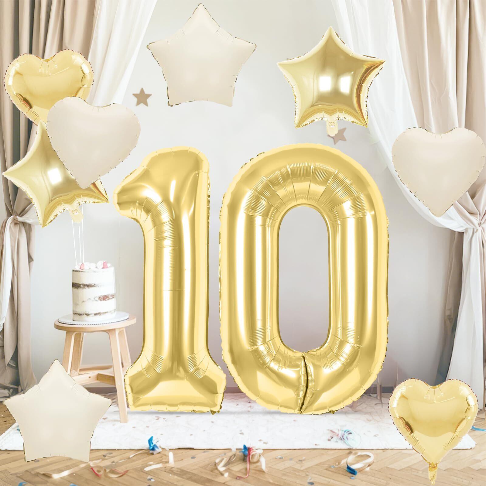【特価セール】誕生日 バルーン 風船セット 飾り付け 10歳 大きい数字 ナンバー10 ハート 星 スター アルミ風船 10個セット バースデー 飾り 記念日 お祝い パーティー 女の子 男の子 ライトゴールド | allstore3