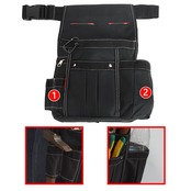 多機能腰袋:3層構造とたくさんのプロポッケトがあって、ツールの整理整頓が便利、取り替えが簡単、作業の効率がアップします。ペンチサック、ペンチホルダー、ハンマー差し、釘袋。色々なポッケトとホルダーがある。