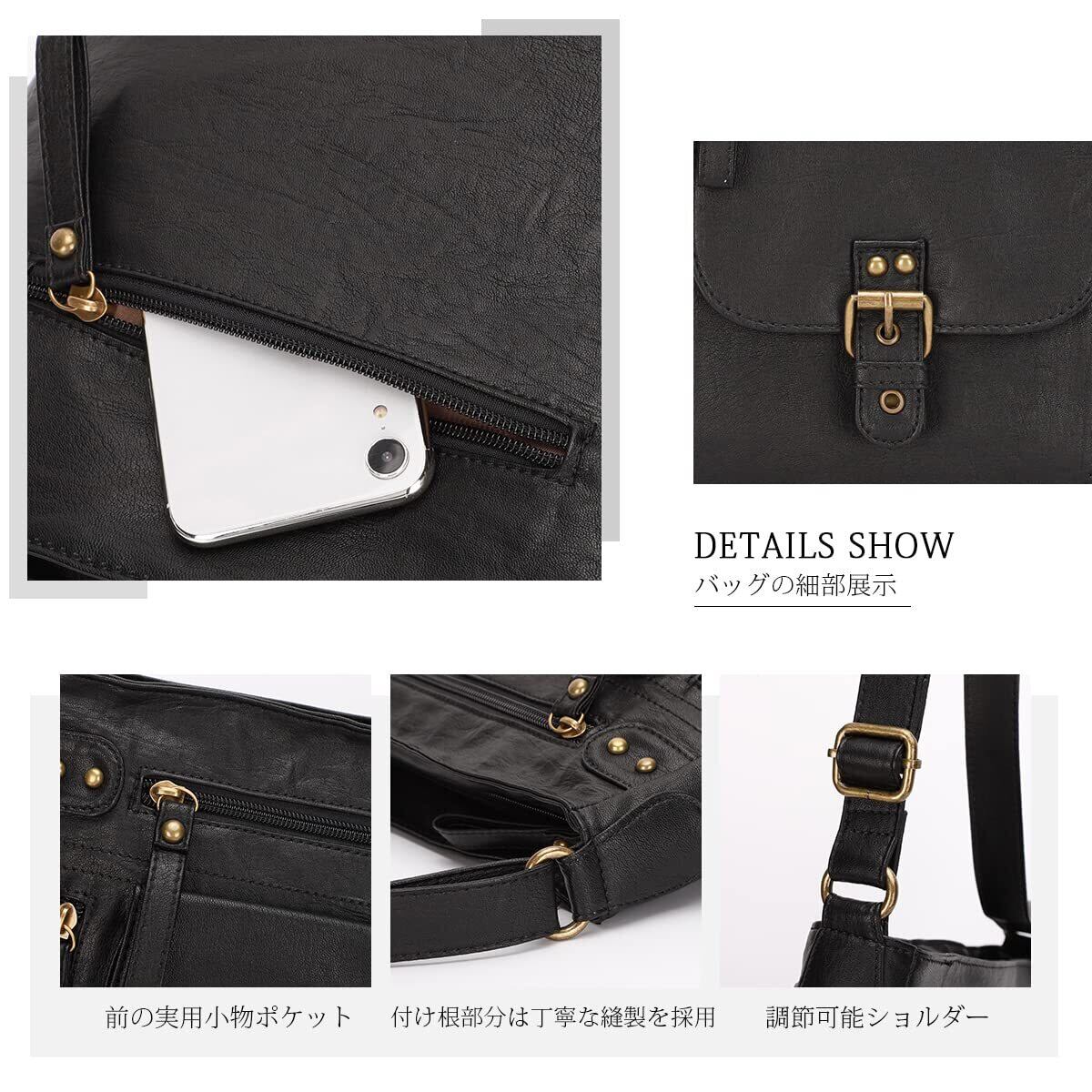 【柔らかい素材を採用】バッグの素材は独特な水洗い技術を生かしたPUレザーを採用して、柔らかい上質なPU革を贅沢に使用して、防水加工で使い心地はよいショルダーバッグです。より一層柔らかい生地は本革のような質感が出て、手触りで任意にこすっても圧痕がなく、本革にも負けない耐久性があります。