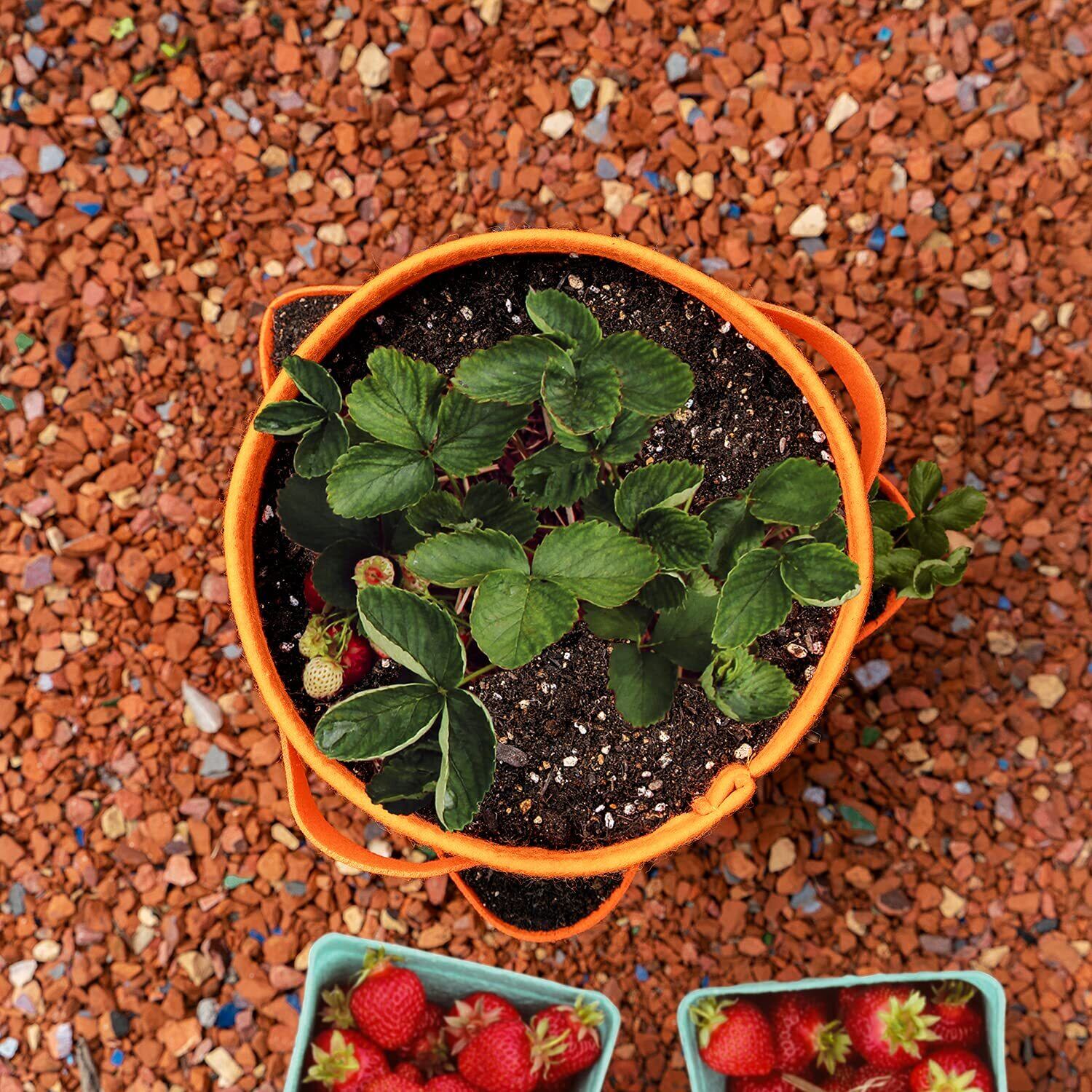 【在庫処分】アストロ フェルトプランター オレンジ 三角穴開き 不織布ポット イチゴ栽培 ギャザリング ガーデン 野菜栽培 植木鉢 家庭菜園 園芸 植え袋 持ち手付き 520-31 | allstore3