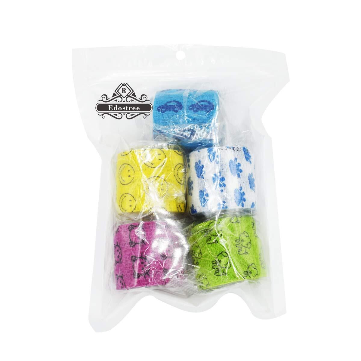 Edostree ペットフレックス 粘着包帯 バンテージ ペット 犬 猫 伸縮 防水 不織布 5点セット 5.0cm*4.5m CWBD-01