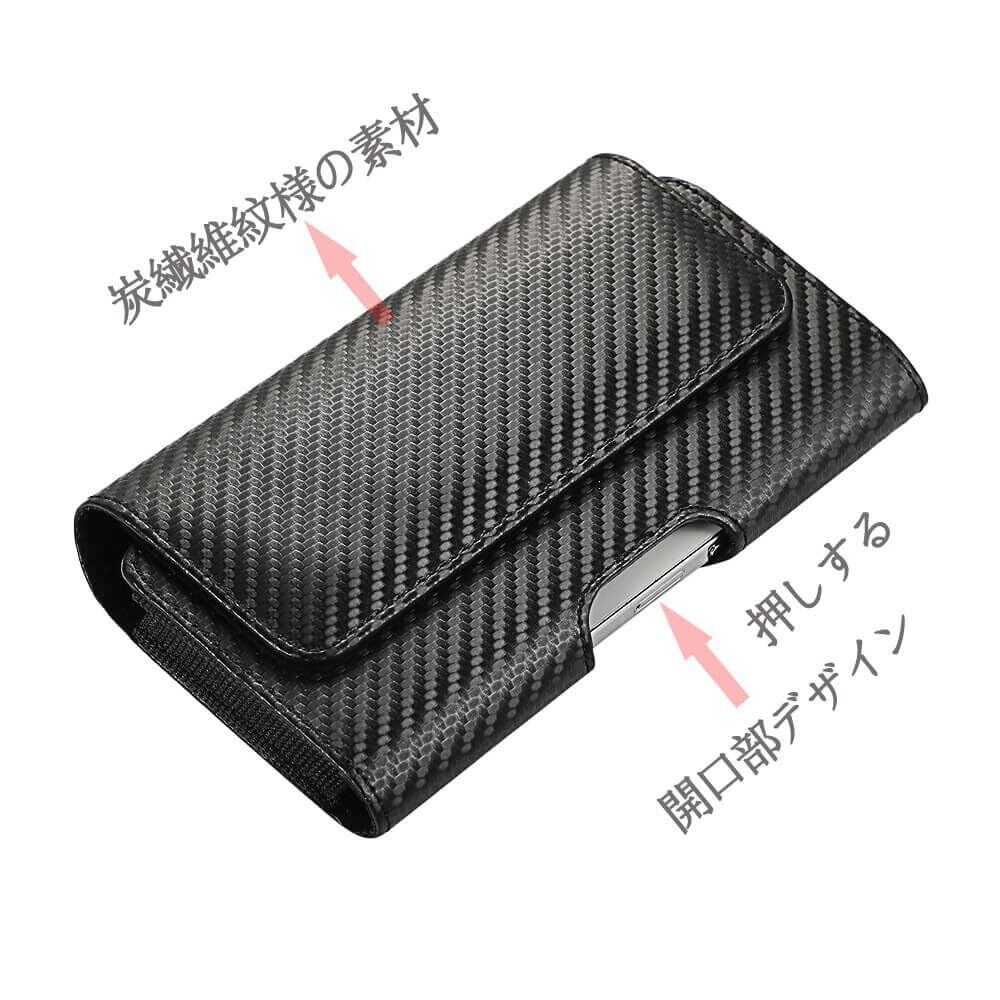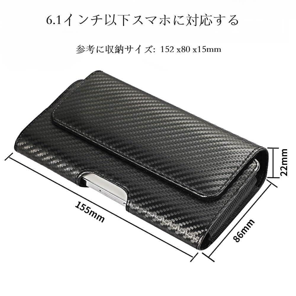 iPhone 16 ベルトホルダー 横, 素材: 炭素繊維紋様PUレザー, 6.1インチのスマホポーチ ベルトクリップサイズ: 15.5x8.6x2.2 cm , 重さ:91グラム. 黒い携帯電話ケースベルト通す