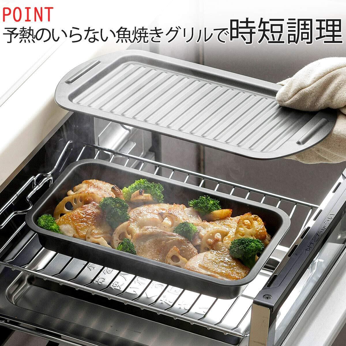 下村企販 グリルパン オーブンパン 【日本製】 魚焼きグリル トースター使用可 手軽に1品作れる ダッチオーブン料理 フッ素加工 こびりつきにくい グリルトレー 1L 時短調理 フタ付き アクアパッツァ ローストビーフ グリルdeクック ブラック スチール 燕三条 38986