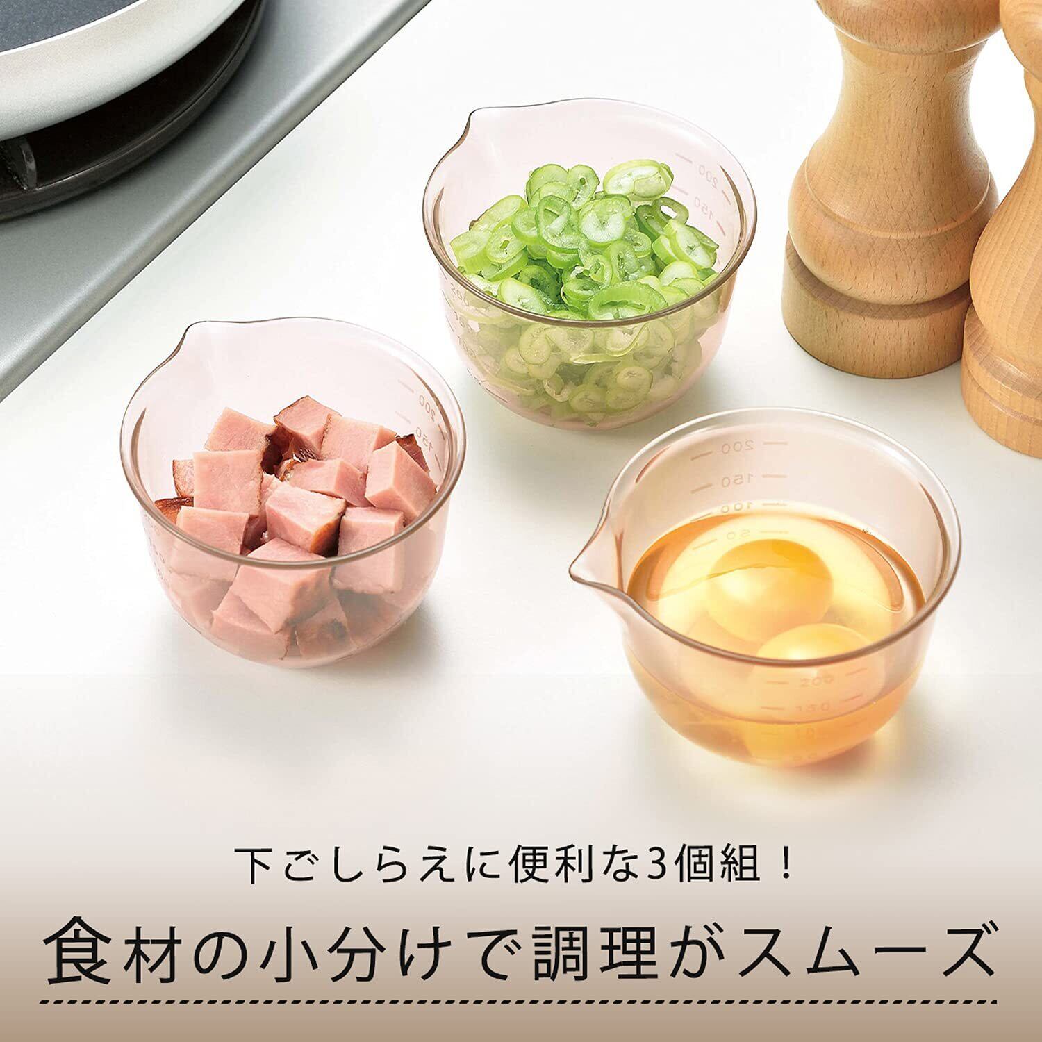 【2022最新】下村企販 耐熱ボウル レンジで使える 3個組 【日本製】 電子レンジ対応 食洗機対応 割れない 軽量 目盛付き 注ぎ口付き 小分け ボール 240ml 製菓 お菓子作り 燕三条 39401