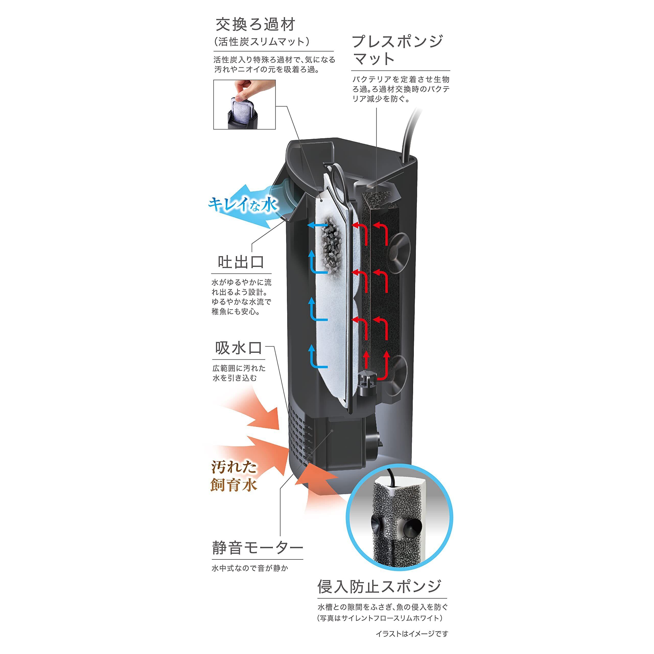 ジェックス GEX AQUA FILTER サイレントフロースリム ブラックSP ハイブリッドフィルター 水中設置式 コーナー設置型