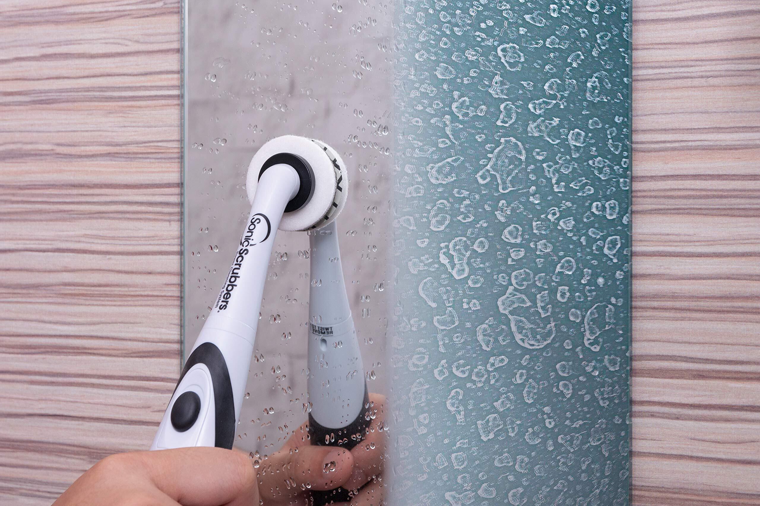 毎分8000反復回転する電動お掃除ブラシに取り付けて、鏡の水垢・ウロコ汚れを水だけでらくらく除去