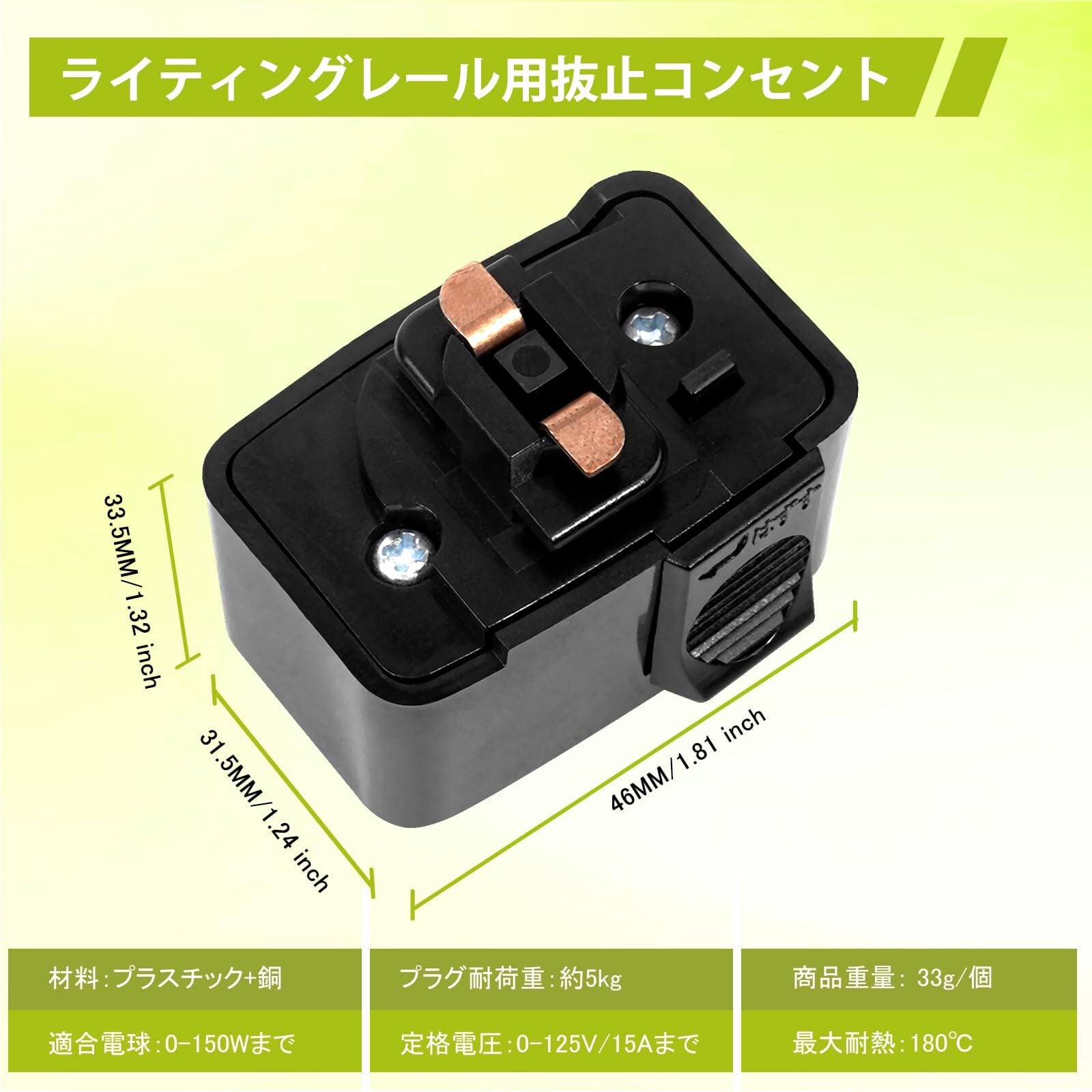 2、仕様: 色:黑い、適合負荷: 15A/125Vまで、包装:1個入り、サイズ:高さ31.5mm×幅23mm×全長46mm、材質:プラスチック+銅、重量:33/個。