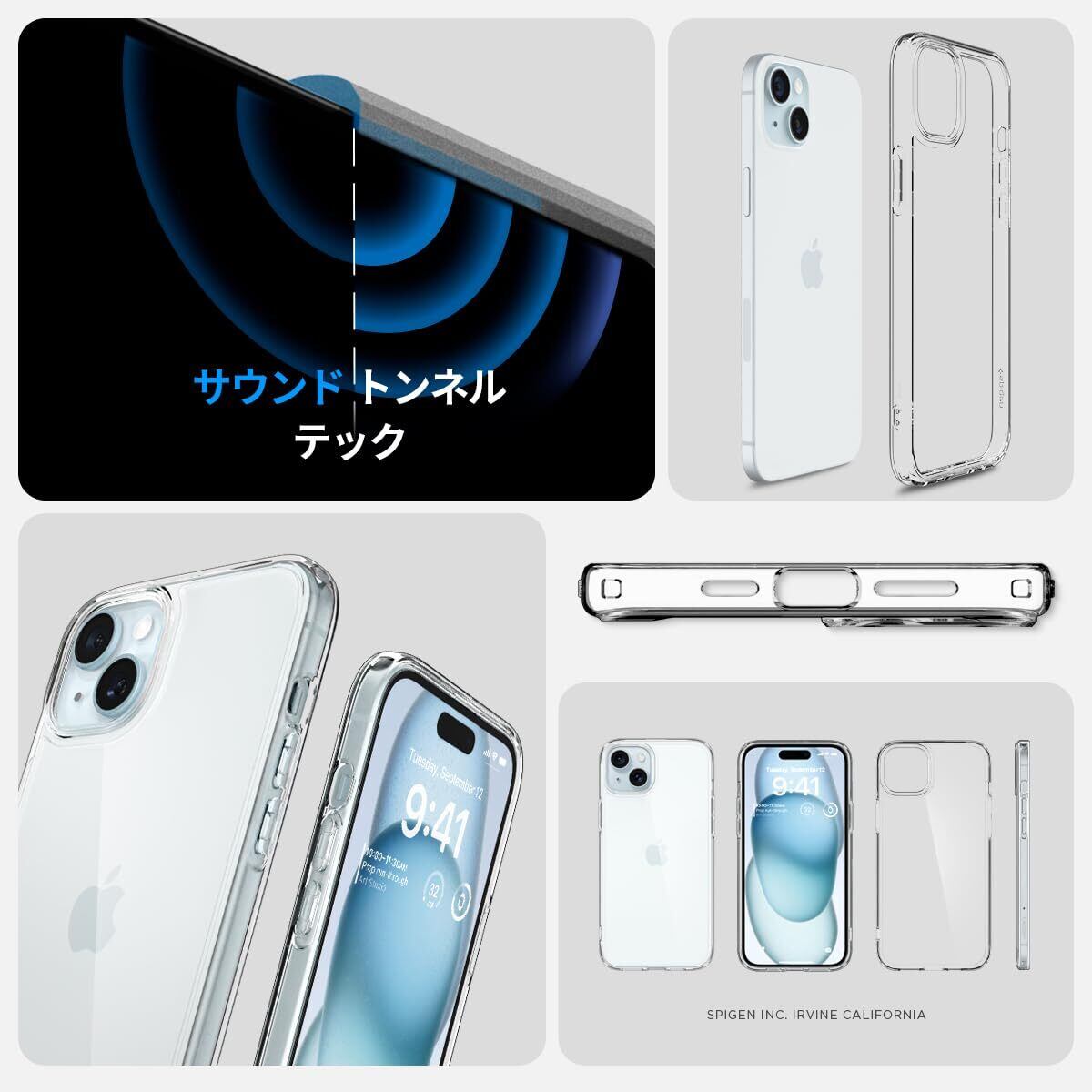 Spigen 【創業18年の技術力】 iPhone 15 ケース クリア 耐衝撃 米軍MIL規格取得 ストラップホール 黄変抑制 透明 TPU バンパーケース 2重構造 レンズ保護 擦り傷防止 ワイヤレス充電対応 ウルトラ・ハイブリッド ACS06793 (クリスタル・クリア)