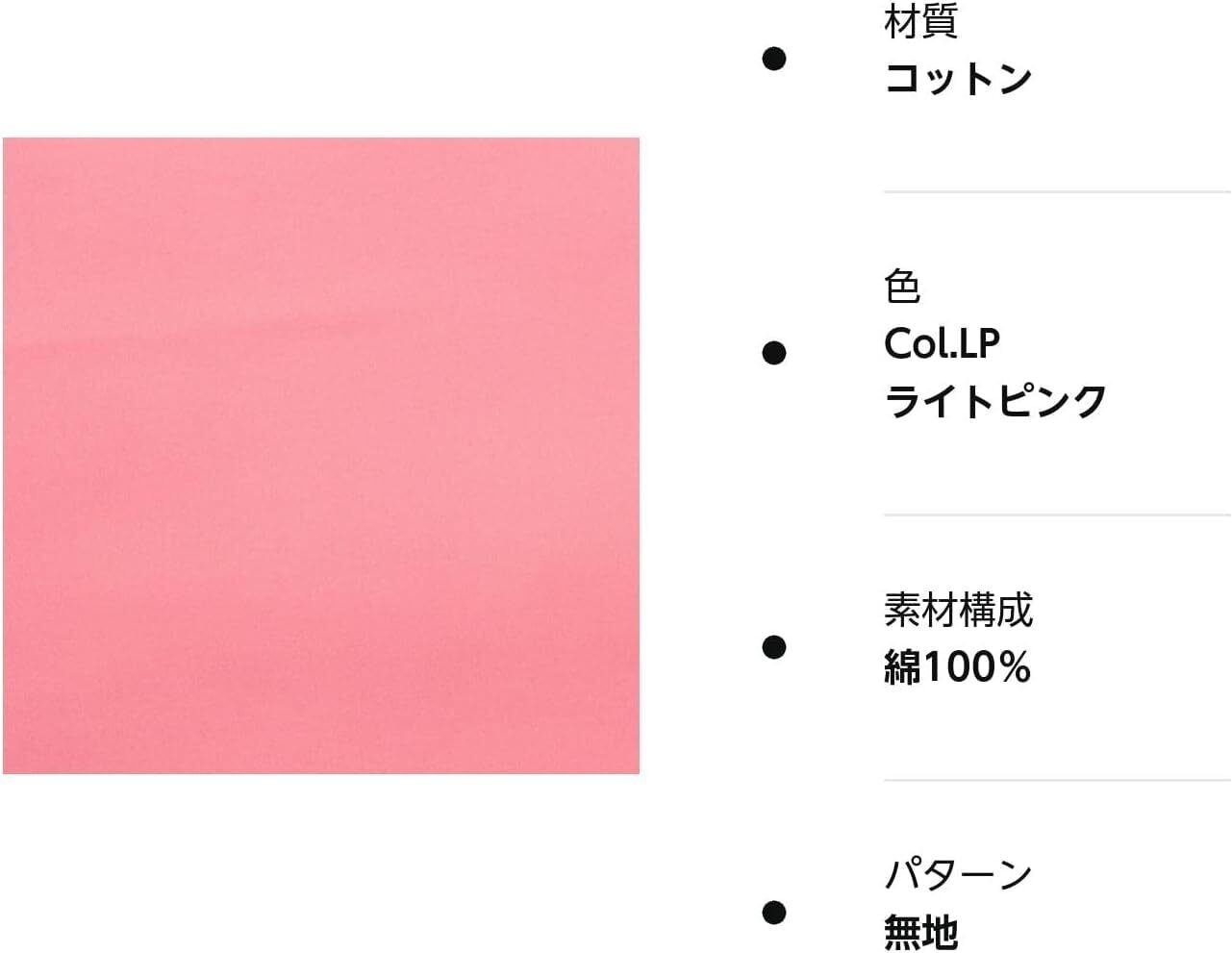 KIYOHARA オックス 生地 無地 綿 約110cm幅×1mカット col.LP ライト ピンク 入園入学3点セットのレシピ付き TY-24S