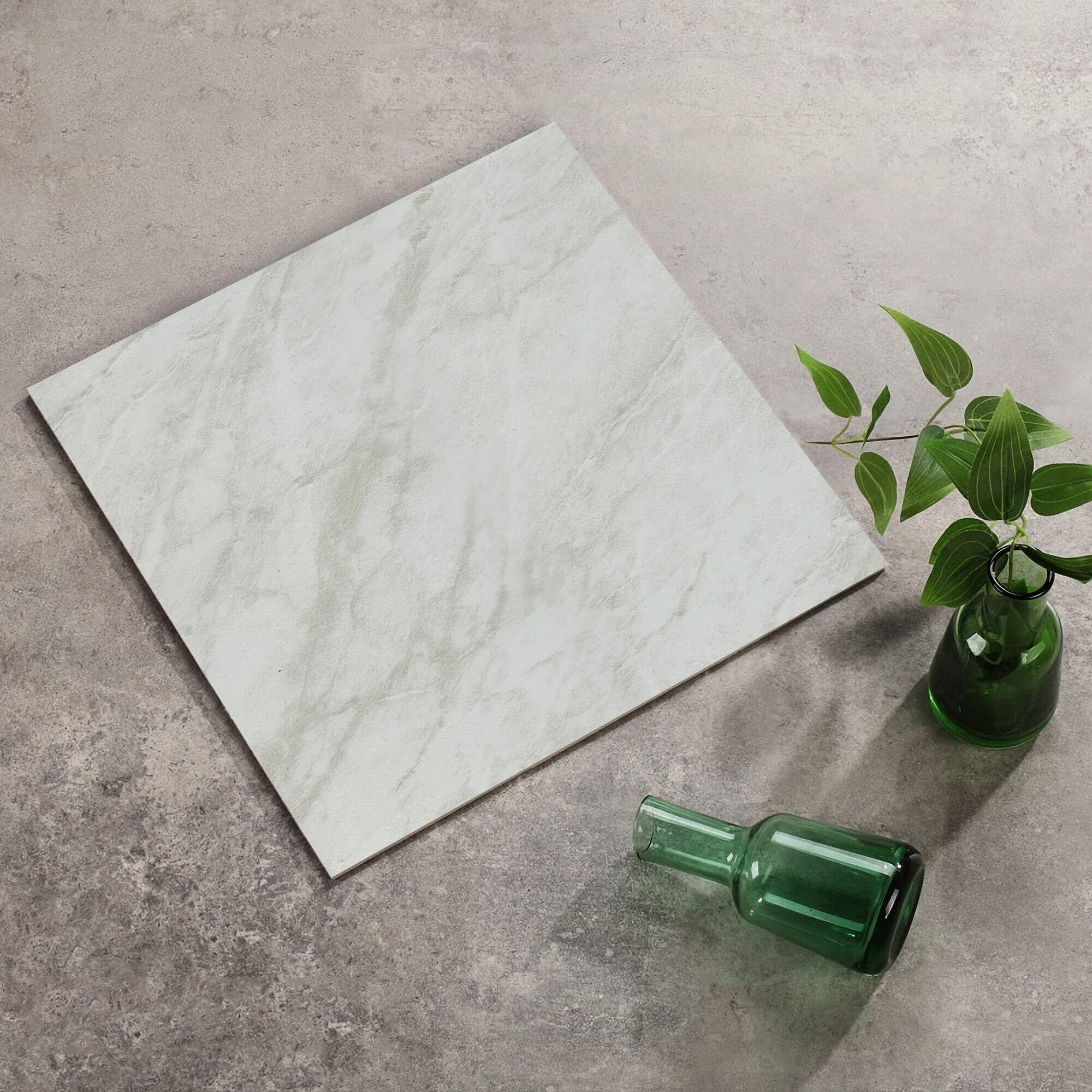 【リアルな大理石質感】フロアタイルの表面はエンボス加工して本物そっくりの大理石と見間違うほど!さらっとした質感。表面耐摩耗性を加工してキズつきにくくなっています。土足でも素足でも心地良いです。