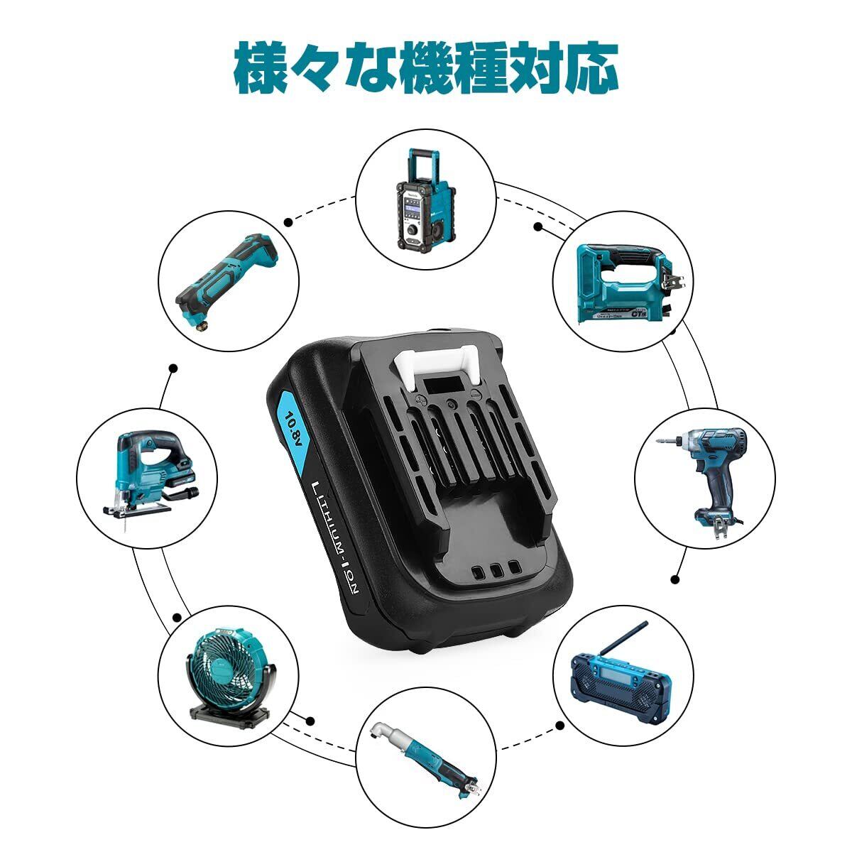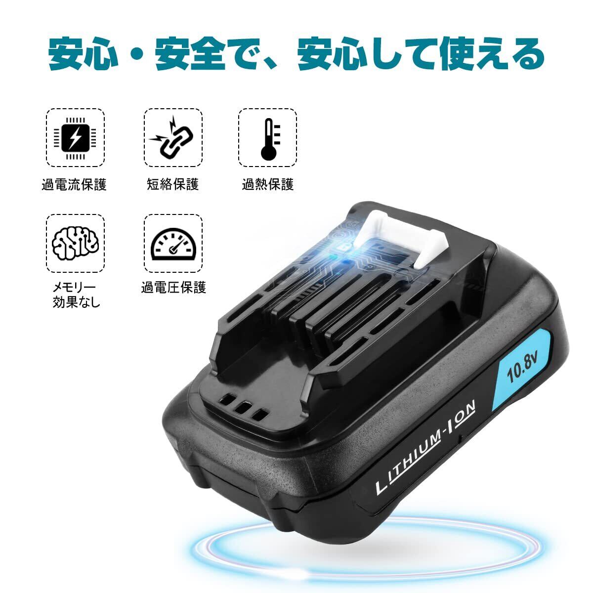 完全互換10.8Vバッテリー:マキタ BL1040 BL1040B BL1015 BL1030B BL1050B BL1041B-2 BL1021B BL1016 BL1060B A-59863など。対応充電器: DC10WC、DC10WD、DC10SA、DC18RE。