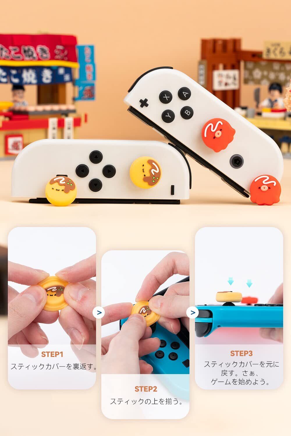 GeekShare Switch/lite/oled対応 アナログスティックカバー switch 有機elモデル可能 ジョイスティック 保護カバー joy con 4枚入れ 親指グリップキャップ アシストボタンカバー シリコン コントロール 滑り止め 誕生日 プレゼント-たこ焼き