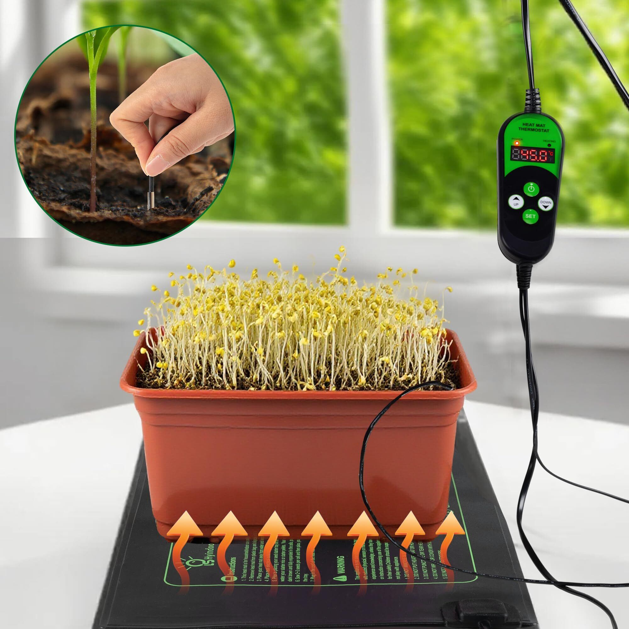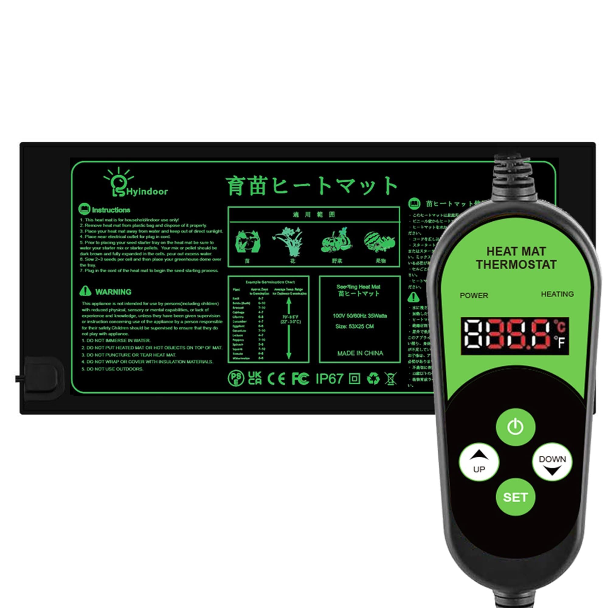 Hyindoor 育苗マット 植物ヒートマット サーモスタット付き タイミング機能 温度制御可能 園芸ヒーター 苗付けヒーターマット 育苗器
