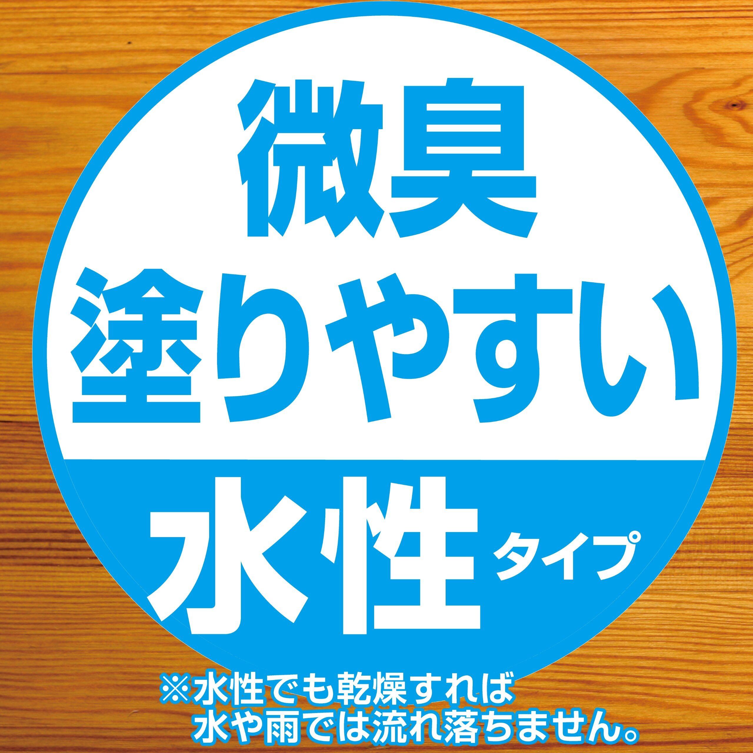 【特長】■[木材をガード! ]優れた木材防腐、防かび、防虫、防藻効果を発揮します。■[色褪せも防止! (UVカット効果)]日焼け(紫外線)による木材の色あせを防止します。■[木目を生かした仕上げ]木材に浸透し、木目を生かした半透明着色仕上げになります。■[木材に浸み込み易い]油性木部保護塗料と比べ、臭いが少なく、取り扱いが簡単な水性タイプ。塗装が初めての方や女性にもオススメ。