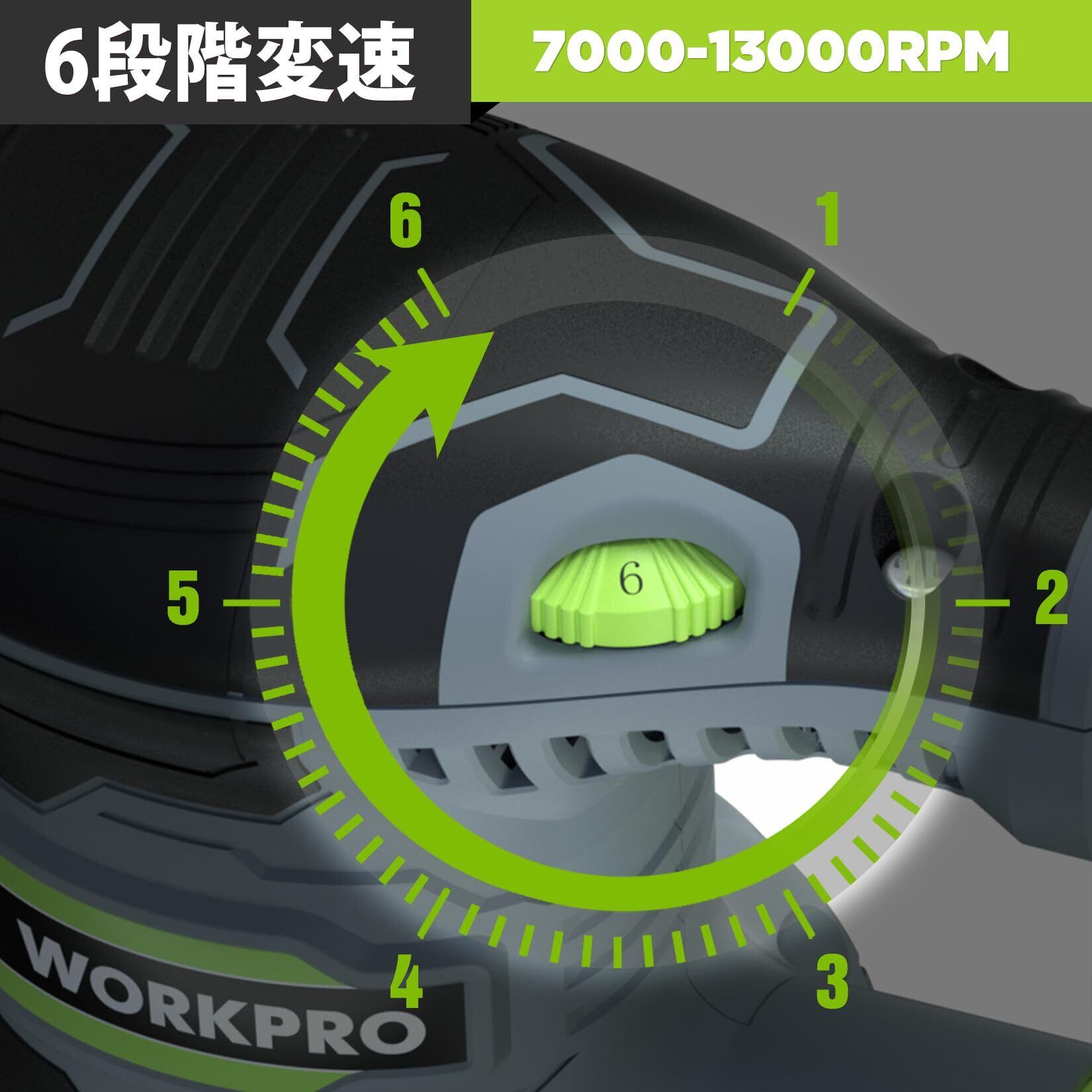 WORKPRO サンダー 電動サンダー ランダムサンダー 300W 13000RPM 6段階調速 高集塵システム マジックテープ式 サンドペーパー20枚 仕上げサンダー DIY日曜大工 木工作業 研磨 仕上げ 荒削り 日本語取扱説明書 PSE認証