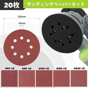【豊かな付属品】電動サンダー本体、集塵ボックス、φ125mmのサンドペーパー20枚(4*サンドペーパー#60、4*サンドペーパー#80、4*サンドペーパー#120、4*サンドペーパー#180、4*サンドペーパー#240)、日本語取扱説明書。カスタマーサポート(24ヶ月付き)