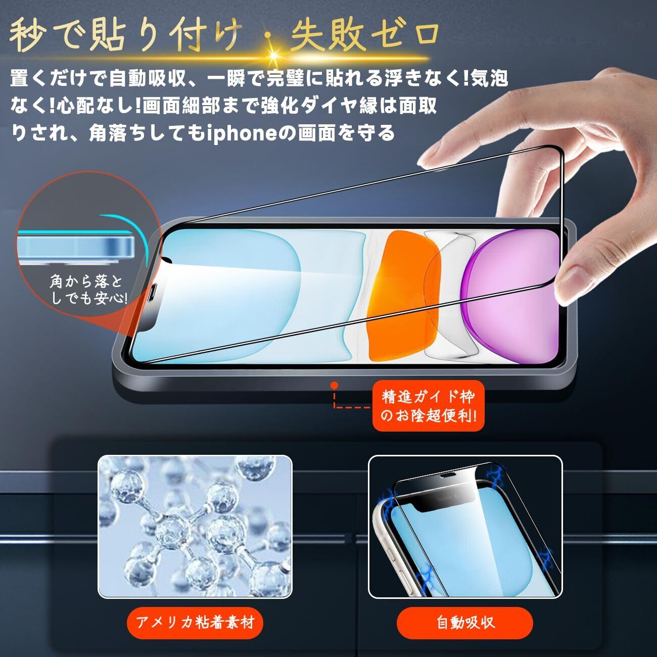 【専用設計·簡単に貼り付け】 本製品 Apple iPhone 11 / iPhone XR アイホン11 あいほん XR 6.1インチ 専用液晶画面保護ガラスフィルムです。本商品は厳選した素材を採用して作られており、フィルムのシリコン自己吸着層があるので、スチールフィルムを携帯電話に合わせて軽く置くだけで、気泡が入らないように簡単に取り付けられます。(ポイント:フロントカメラのカメラ穴についてですが、ほこり・異物などの堆積を防止するため、ガラスフィルムにカメラ穴を開けていません。Seninhiのガラスフィルム 、透過率は99.9%なので、フロントカメラの正常使用に全く影響がありません。)*機種によってサイズが異なりますので、ご購入の場合に機種をよく確認してください。