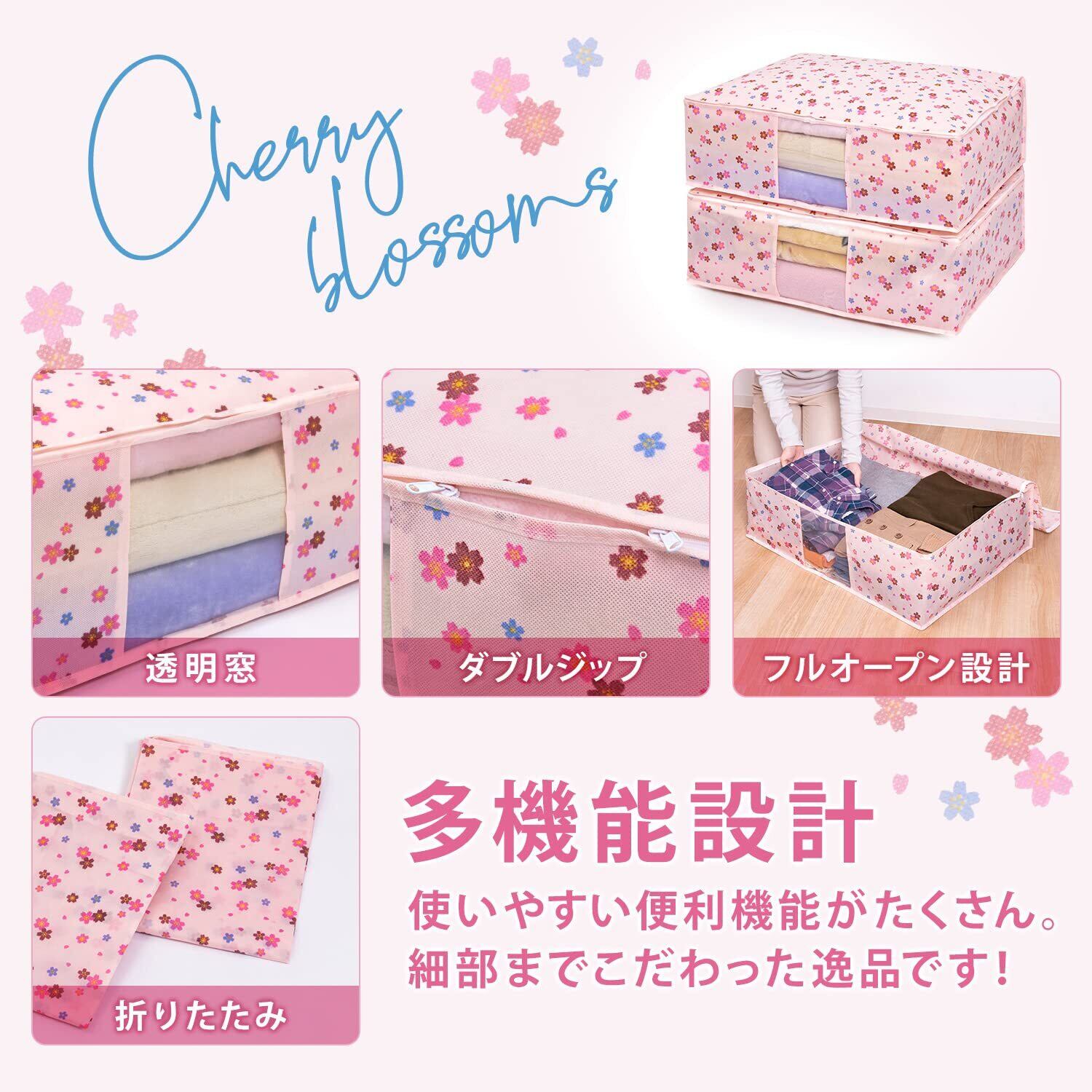 【新春セール】アストロ 抗菌防臭 布団収納ケース 毛布 軽寝具用 2枚組 通気性の良い不織布がホコリなどの汚れをガード 中身の見える透明窓付き 布団収納 布団袋 収納ボックス 収納袋 引っ越し クローゼット 押し入れ ピンク さくら柄 197-22 | allstore3