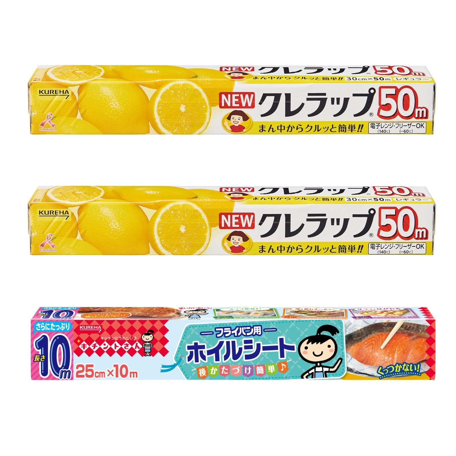 クレラップレギュラー50m2本+フライパン用ホイルシート10m