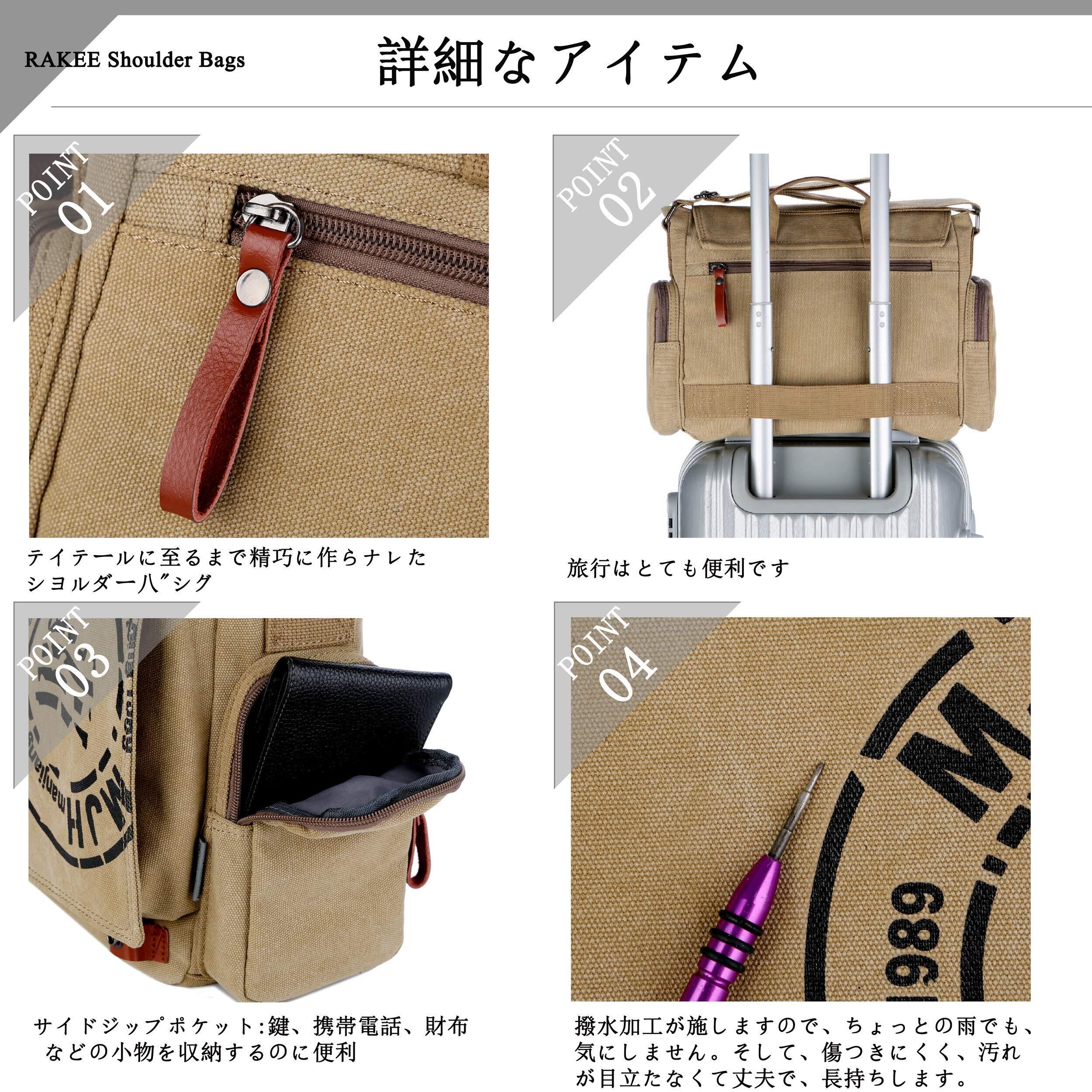 [RAKEE] ショルダーバッグ トート メンズ メッセンジャーバッグ 帆布 肩掛け斜めがけバッグ a4サイズ 大容量 丈夫 6色