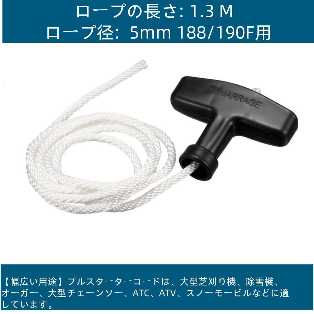 リコイルスタータープルハンドル ロープコード 芝刈り機トリマーチェーンソーエンジンパーツ用ガソリンガーデン機の継手用 長さ1.3M (5mm)