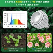 【室内栽培の楽しさを楽しむ】観葉植物や野菜の室内栽培用の植物栽培ランプ。日照不足では植物の栽培が難しく、移動や管理が面倒な植物育成ライトを設置することで、より室内栽培の楽しみを味わうことができます。 PPFD値656、ビーム角38度、最大照度は100万を超えます。電球のようにソケット部分を回転させるだけで簡単に取り付けられます。 植物の高温火傷を避けるため、安全距離にご注意ください(※LED素子の直下距離は約40cm)。