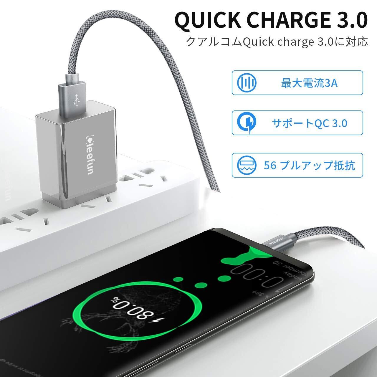 【急速充電&高速データ転送】 最大3A電流、短時間内に充電とデータ伝送を完成でき、各種類のUSB充電接続口、多接続口充電器に対応、お宅、喫茶店、車内及び旅行中に充電を完成します。(すべてのTYPE-C付きの携帯電話と設備の快速充電に適用されていません)
