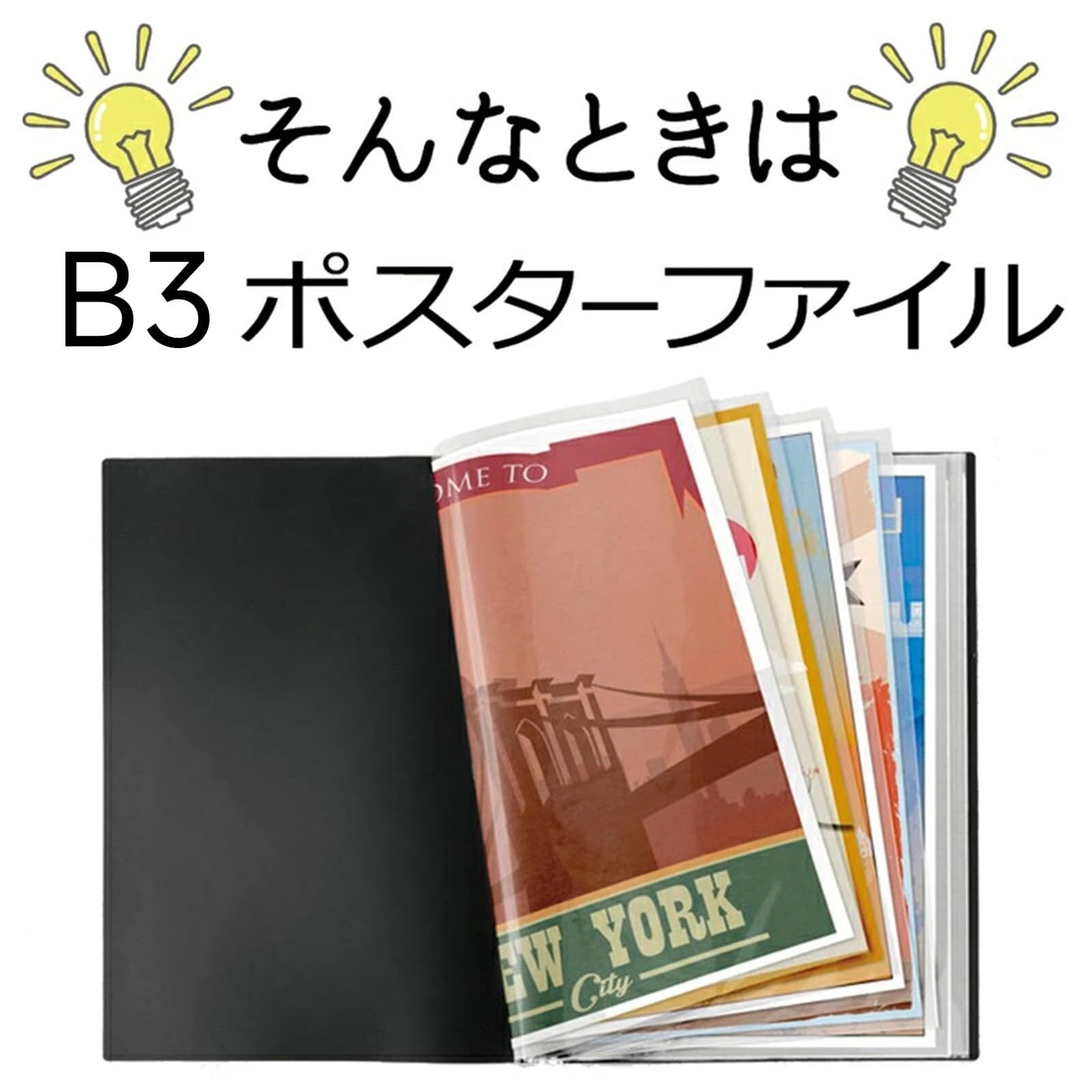 UYTON B3ポスターファイル クリアファイル 30枚収納 15ポケット ポスターケース折り曲げ不可資料 PVC素材 ポケット大きいサイズ 作品 新聞 保管 収納 鑑賞大型バインダー (ブラック30枚)