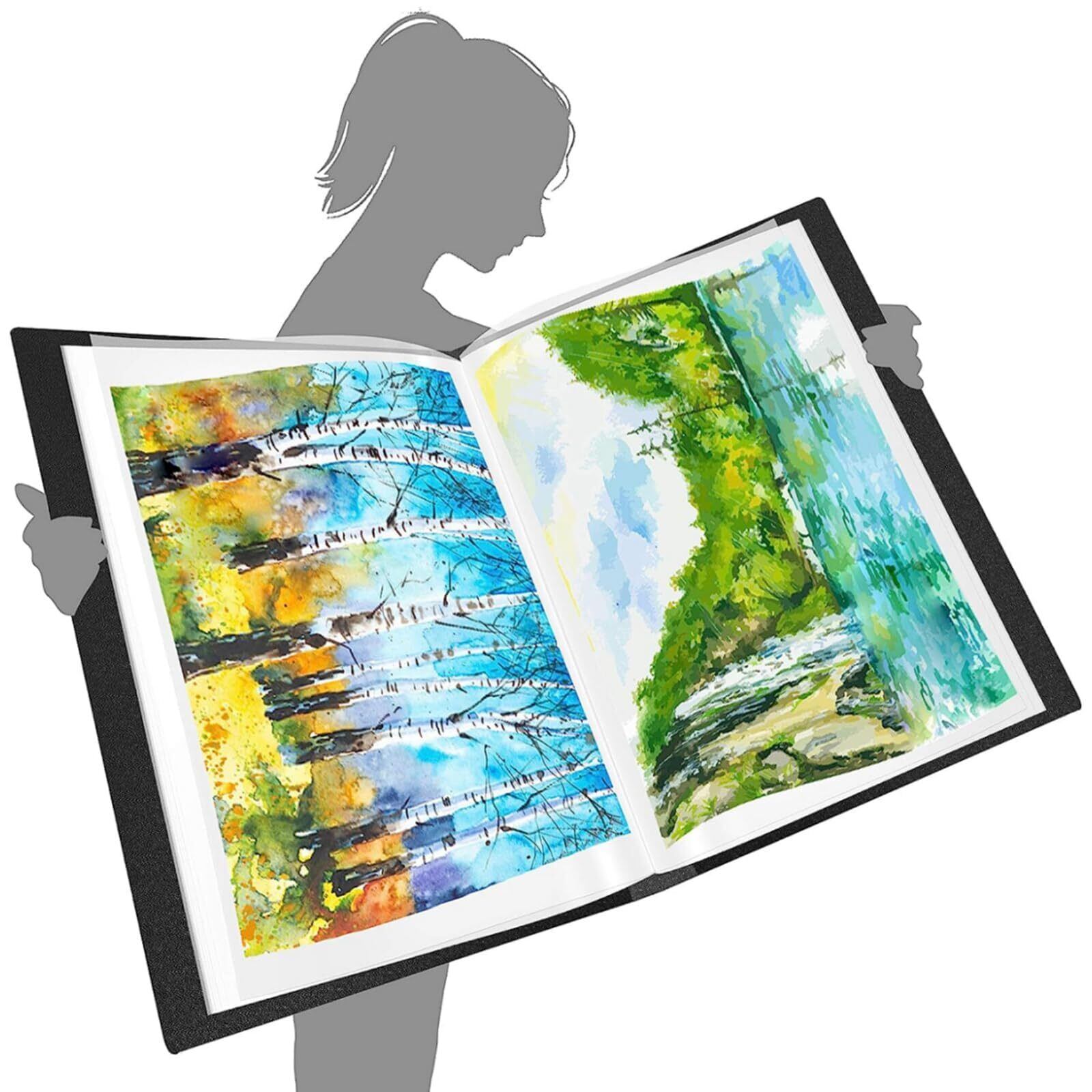 【大型用紙の保管に最適】このポスターフォルダは透明で眩しくなく、コピーの転移、インクの脱落は発生せず、貴重なファイル、ポスター、証明書を長期保存でき、普通のように見え、実際には非常に優れている:15枚の封筒(最大30ページ収容可能)お気に入りのポスターや子どもの絵を、折りたたむことなくきれいに収納でき、いつでもパラパラめくるだけで簡単に見ることができます。