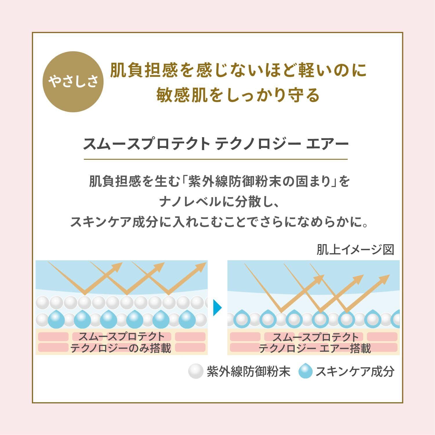 快適な使い心地がさらに進化。肌負担感を感じないほど軽いのに、敏感肌をしっかり守るさらさらマイルドUVミルク。 低刺激処方(無添加*・無香料・無着色・アルコール(エタノール)フリー)で敏感肌や赤ちゃん**の肌を守る。 せっけんで落とせる。耐こすれ。 顔・からだ用。 化粧下地にも。 *防腐剤(パラベン)、鉱物油不使用 **新生児を除く
