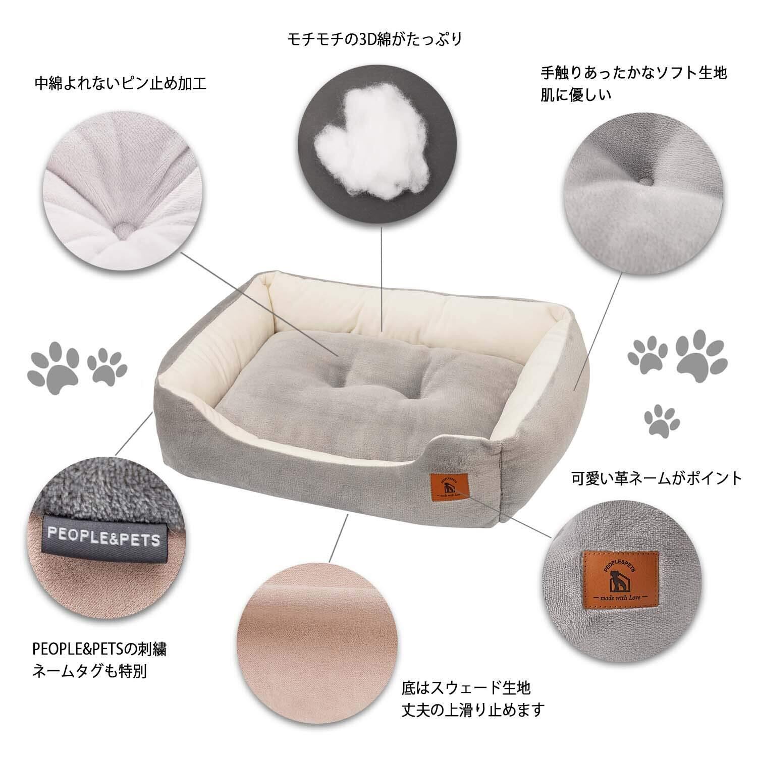 「使い心地」と「使いやすさ」にこだわったデザイン。◆猫と小型犬などの小動物向けのスクエア型のペットベッド。モチモチの3D綿と手触りの良い生地を使用。クッションには3D綿がたっぷり!ふわふわで寝心地抜群。◆もっちりとした感触の柔らかベッドが愛ネコと愛犬の体をやさしく包まれ、ふんわり支えます。◆可愛いスクエア型で、手足が伸ばしやすい。柔らかベッドが体にフィットして思わずうっとり。◆高い縁に綿がたっぷりはいている。ふっくらもちもちで、顎のせにぴったり。◆入り口が低いデザイン。出入りしやすく足の悪い子にもシニアにも優しい。