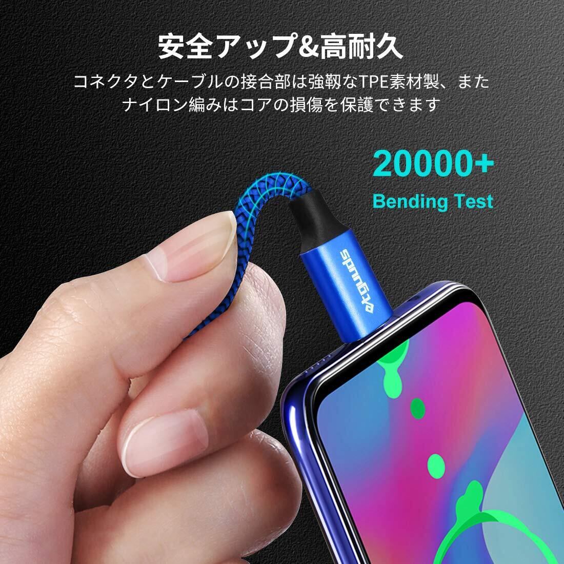 【優れたの高耐久性】このたいぷcケーブルは高耐久ナイロン素材を使用し、80Nの引っ張り強度試験と20,000回以上曲げ試験にも合格し、適度な弾力としなやかさがあります。コネクタ部分にもアルミニウム合金製で繰り返しの抜き挿しても耐えられて、一般のUSBケーブルより長くご使用いただけます!