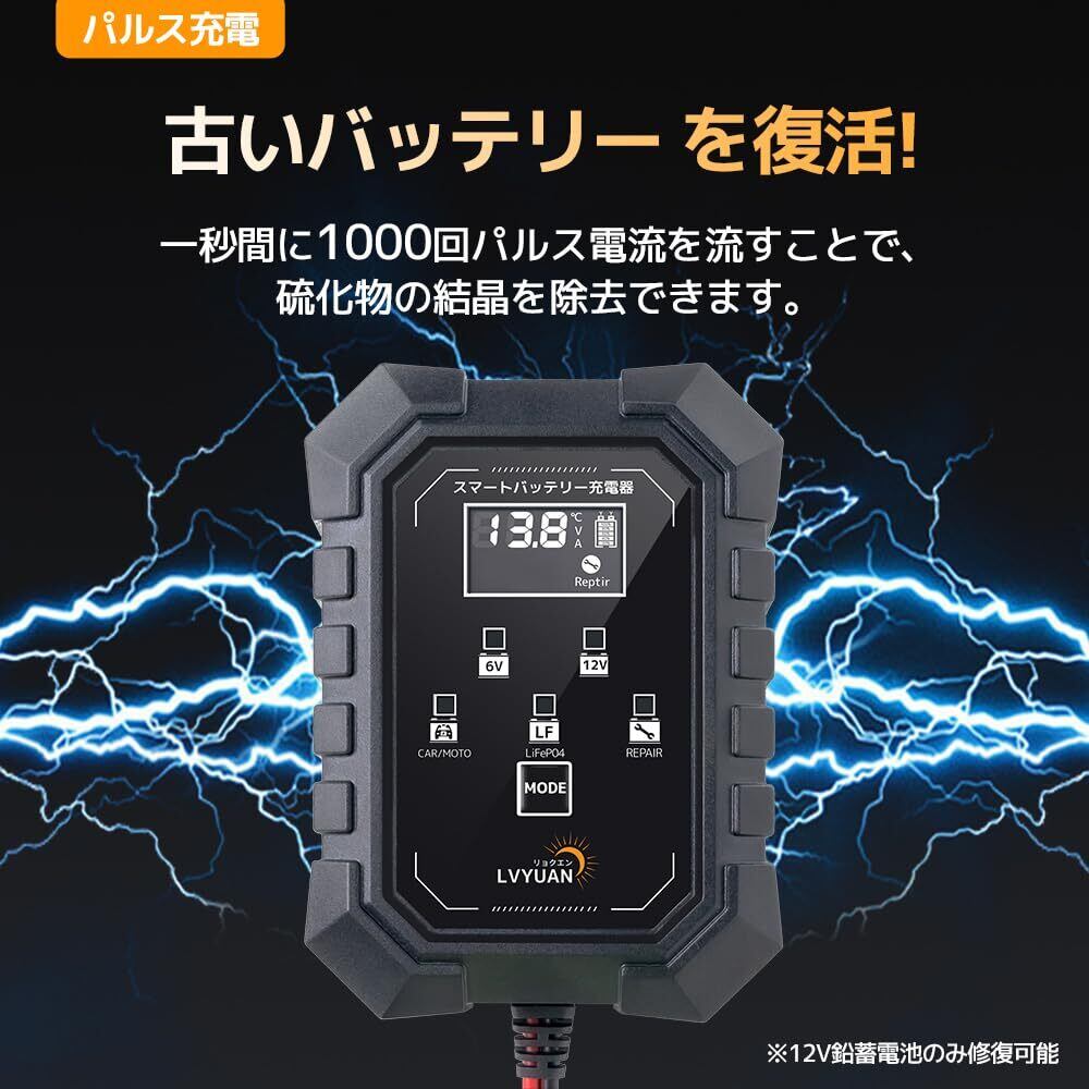 【人気商品】リョクエン(LVYUAN)全自動パルスバッテリー充電器 6V/12V 自動認識 バッテリーチャージャー バイク充電器 定格1.5A【車両ケーブル付属】SAEコネクタ【2025新登場】6V/12V鉛/12VLiFePO4リチウム電池両用 2AH-20AH パルス修復 [ PSE取得済み] スマート充電【サルフェーション 除去機能】 AGM/GEL 車充電可能 バイク・農機・建設機械・小型船舶 | allstore3