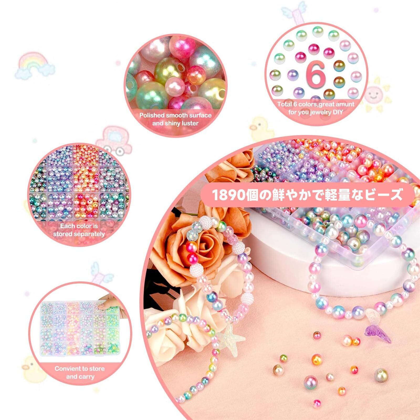 【お得なセット】6色4/6/8/10mmパールビーズキット、4mmビーズ各色約200個、6mmビーズ各色約70個、8mmビーズ各色約30個、10mmビーズ各色約15個、合計約1890個、24コンパートメント収納コンテナ。