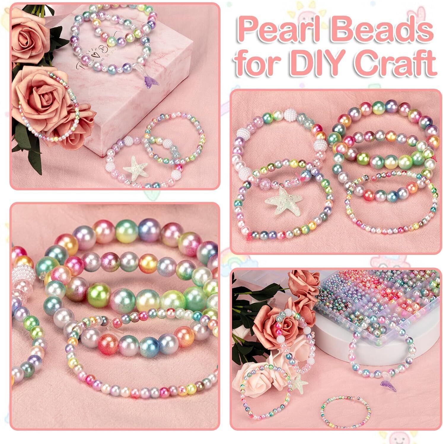 Meschett 1890Pcsパールビーズ、4/6/8/10mm 6色マルチカラーパールビーズジュエリー作成用の穴のある工芸品用ルーズパール、ブレスレットネックレスイヤリングを作成するためのラウンドビーズ