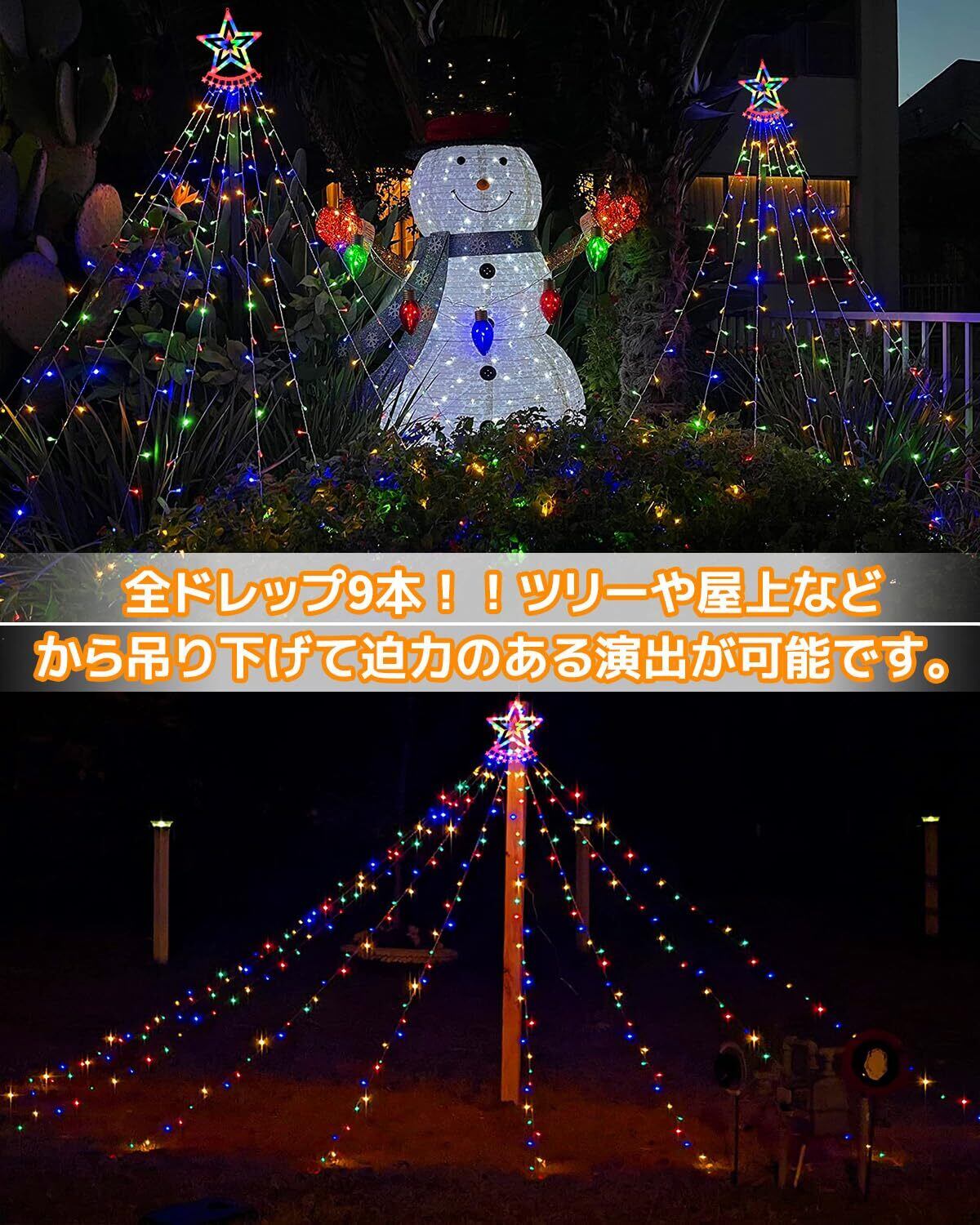 【新春セール】LED イルミネーションライト 屋外 防水 LEDストリングライト 9本*3.5M 350球 クリスマス飾りライト ドレープ 星モチーフ クリスマスツリーライト 8つ点灯モード タイマー機能 キャンプ用 ガーランド用 イルミネーションライト クリスマス/パーティー/新年/祝日/結婚式/室外/室内/庭対応 デコレーション