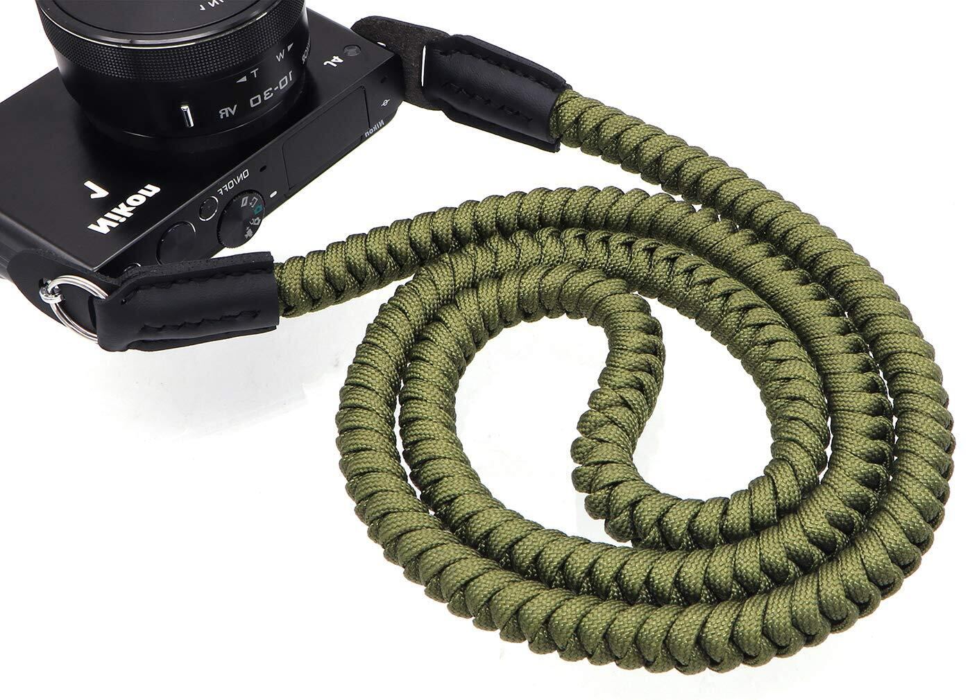 【特価商品】INPON カメラストラップ パラコード編み ネックストラップ ショルダーストラップ 丸リング/リングカバー付き 一眼レフ/ミラーレスカメラ用 グリーン 線径13mm 全長105cm | allstore3